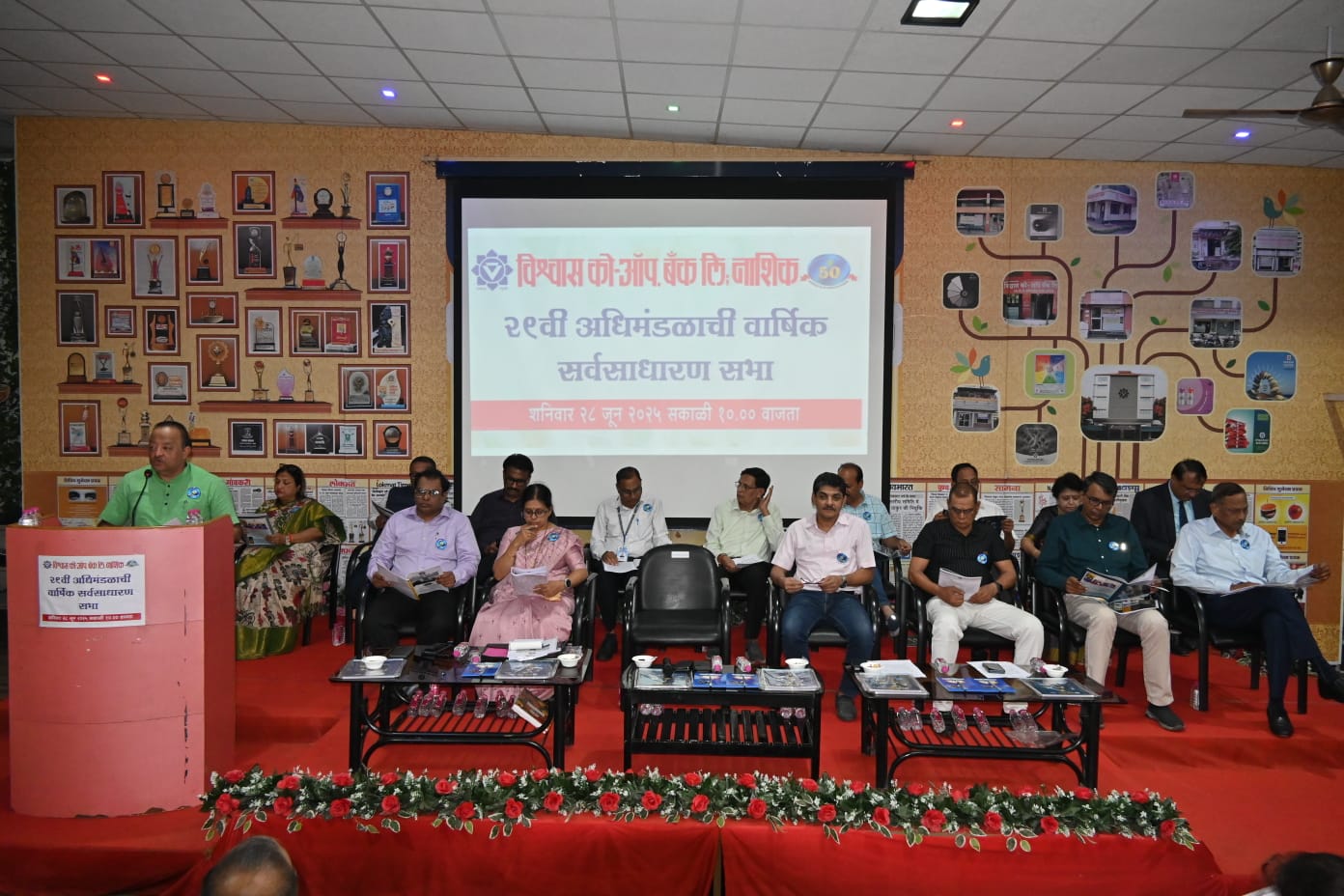 नाशिक (प्रतिनिधी) : विश्वास को-ऑप. बँकेची 29वी वार्षिक सर्वसाधारण सभा विश्वास गार्डन, सावरकरनगर, नाशिक येथे खेळीमेळीच्या वातावरणात संपन्न झाली. सभेच्या अध्यक्षस्थानी बँकेचे संस्थापक अध्यक्ष विश्वास लिलावती जयदेव ठाकूर होते. यावेळी विश्वास लिलावती जयदेव ठाकूर यांनी बँकेच्या 29 वर्षांच्या वाटचालीचा व प्रगतीशीलतेचा आढावा घेतला. बँकिंग क्षेत्रातील झपाट्याने होणारे बदल, तंत्रज्ञानाची प्रगती आणि ग्राहकांच्या अपेक्षांमध्ये झालेली वाढ लक्षात घेता, विश्वास बँक ‘आधुनिक सेवा ग्राहकहित’ यांचा सुरेख समन्वय साधत आहे, त्यामुळेच आम्ही बँकिंग सेवा अधिक पारदर्शक, सुरक्षित आणि ग्राहकाभिमुख देत आहोत. विश्वास बँक अनेक डिजिटल उपक्रम राबवत आहे. मोबाईल बँकिंगचा विस्तार, ग्राहक सेवा प्रणाली आणि इंटरनेट बँकिंगच्या नव्या सोयी यामुळे सेवा अधिक कार्यक्षम व सुलभ झाली आहे, ही सर्वांसाठी गौरवाची बाब आहे, हे यश म्हणजे बँकेच्या कार्यक्षमतेची, पारदर्शकतेची आणि सभासद, ग्राहकांच्या विश्वासाची पावती आहे. बँकेच्या शिवाजीनगर (सातपूर) व उपनगर (नाशिकरोड) या दोन शाखांना रिझर्व्ह बँक ऑफ इंडियाची परवानगी मिळाली आहे. या शाखा जून 2025 मध्ये सुरू झाल्या आहेत. बँकेने या आर्थिक वर्षांत रु. 944 कोटी रुपर्यांपर्यंत मिश्र व्यवसाय केला असून येत्या आर्थिक वर्षात रु. 1000 कोटी व्यवसायापर्यंत लक्ष्य साध्य करेल हे निश्चितच हे आपल्या सर्वांच्या सामूहिक प्रयत्नांचेच यश आहे. बँकेच्या वैशिष्ट्यपूर्ण व्यवस्थापनप्रणालीमुळे दरवर्षी बँकेला पुरस्कारांनी सन्मानित करण्यात येते याही वर्षी नाशिक जिल्हा नागरी सहकारी बँक्स् असोसिएशन, नाशिक तर्फे 501 ते 700 कोटीपर्यंत ठेवी असलेल्या बँकांच्या गटात द्वितीय न्युबा अवार्ड 2023-24 देऊन सन्मानित करण्यात आले तसेच महाराष्ट्र राज्य सहकारी बँक्स् असोसिएशन लि., मुंबई तर्फे पद्भूषण कै. वसंतदादा पाटील उत्कृष्ट नागरी सहकारी बँक पुरस्कार 2023-24 रु. 500 ते रु. 1000 कोटीपर्यंत ठेवी असणार्या विभागात जाहीर झालेला आहे. आपल्या बँकेचे मोबईल अॅप ही सुरू झाले आहे. त्यामुळे डिजीटल बँकिंगच्या स्पर्धेत बँक यशस्वीपणे ग्राहक सेवा देत आहे. ऋडथच (ऋळपरपलळरश्रश्रू र्डेीपव रपव थशश्रश्र चरपरसशव) या अंतर्गत तिडके कॉलनी येथे या आर्थिक वर्षांतील तिसरी शाखा सुरू होईल. बँकेच्या तब्बल 16 शाखा होत आहेत. विश्वास बँकेच्या 31 मार्च 2025 अखेर एकूण ठेवी रु. 572 कोटी 75 लाख झाल्या असून कर्ज वाटप रु. 372 कोटी 03 लाख व सीडी रेशो 64.96% इतका आहे. बँकेचा एकूण व्यवसाय रु. 944 कोटी 78 लाखांपर्यंत पोहोचला आहे. बँकेला ढोबळ नफा रु. 7 कोटी 56 लाख व निव्वळ नफा रु. 4 कोटी 14 लाख झालेला आहे. बँकेचे भागभांडवल रु.18 कोटी 49 लाख असून सभासद संख्या 9 हजार 983 इतकी आहे, बँके