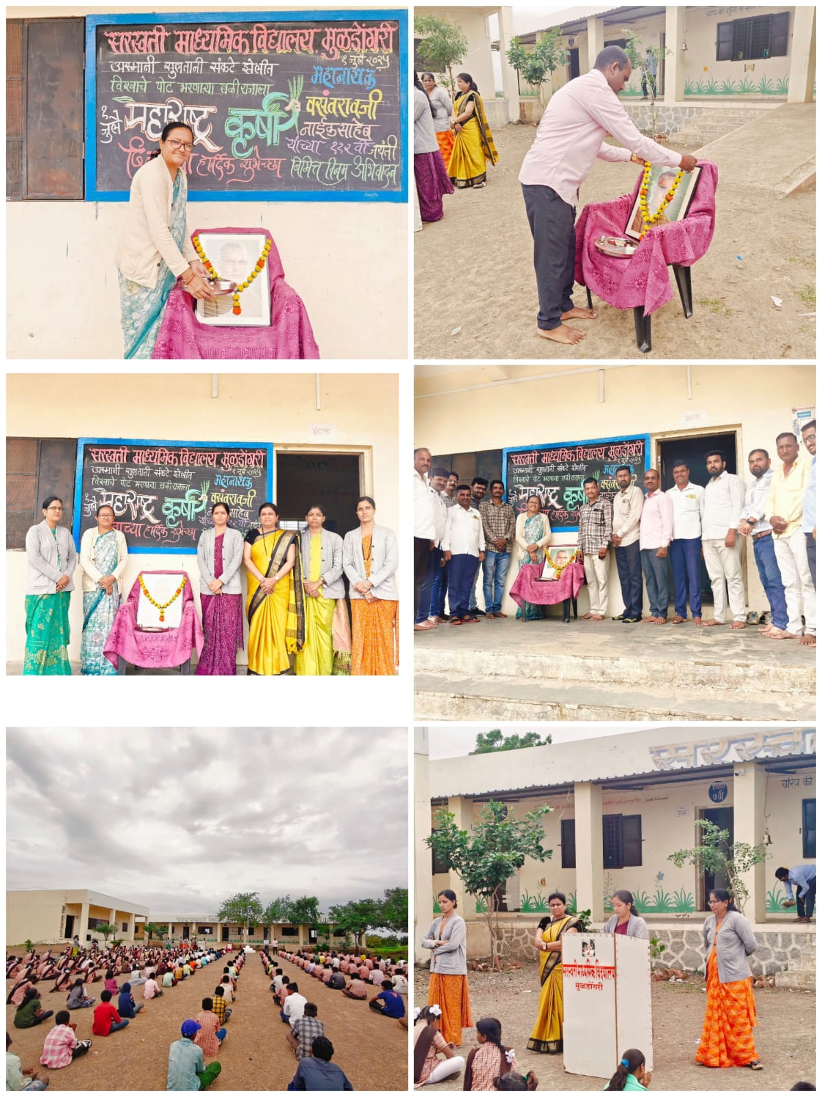 मूळडोंगरी (प्रतिनिधी) “ठेवून शेतीचे भान जीवाचे करतो रान पिकवतो तू म्हणून वाढवले जात पान बळीराजा तूच खरी महाराष्ट्राची शान”…दिनांक १- जुलै-2025 वार मंगळवार रोजी महाराष्ट्र कृषी दिन व हरितक्रांतीचे प्रणेते वसंतराव फुलसिंग नाईक यांची 112 वी जयंती विद्यालयात साजरी करण्यात आली. याप्रसंगी विद्यालयाचे संस्थापक अध्यक्ष एस. जी. राठोड साहेब व संस्थेचे सचिव सिद्धांत दादा राठोड व माननीय मुख्याध्यापिका सौ एस. एस. बोरसे मॅडम यांनी प्रमुख पाहुणे स्थान स्वीकारले. वसंतराव नाईक यांच्या प्रतिमेला हार व पुष्पगुच्छ अर्पण केला.या वेळी विद्यालयातील सहशिक्षक श्री जाधव एम. ई. यांनी वसंतराव नाईक यांच्या जीवनावर आपले पुष्पगुंपले. यावेळी कार्यक्रमाचे सूत्रसंचालन श्रीमती शितल माळी मॅडम यांनी केले व छोटेसे गीत सादर केले विद्यालयातील इयत्ता पाचवी ते दहावीतील विद्यार्थ्यांनी आपल्या भाषणात ना त्यांच्या जीवनावर मनोगत व्यक्त केले.यावेळी विद्यालयातील सर्व शिक्षक शिक्षिका व शिक्षकेतर कर्मचारी उपस्थित होते.