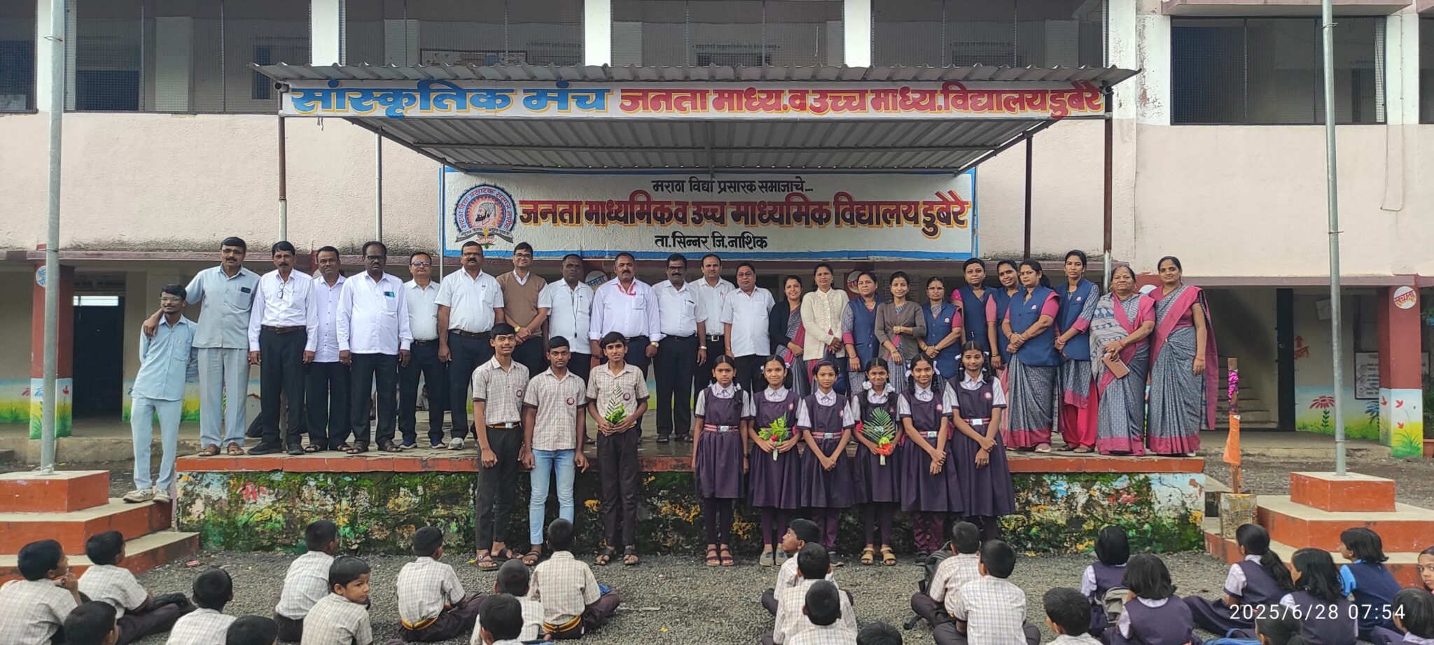 सिन्नर (प्रतिनिधी) :- डुबेरे येथील जनता माध्यमिक व उच्च माध्यमिक विद्यालयात संस्थेचे तालुका संचालक कृष्णाजी भगत यांच्या मार्गदर्शनाखाली शालेय मंत्रिमंडळाची निवड लोकशाही पद्धतीने करण्यात आली. मंत्रीमंडळाच्या निवडणुकीचे नियोजन विद्यालयाचे पर्यवेक्षक उल्हास पवार यांनी केले. शालेय विद्यार्थ्यांना निवडणूक प्रक्रिया माहिती व्हावी या उद्देशाने निवडणूक कार्यक्रम,उमेदवारांनी फाॅर्म भरणे, माघार घेणे, चिन्ह वाटप करणे,शालेय आवारात प्रचार करणे इत्यादी सर्व प्रक्रिया पूर्ण करुन चिठ्ठीद्वारे मतदान घेण्यात आले. मतदान प्रक्रिया पूर्ण झाल्यानंतर मतमोजणी करून ज्या उमेदवाराला जास्त मतदान मिळाले त्याला विजयी घोषित करण्यात आले. याप्रमाणे शालेय मंत्रिमंडळातील पंतप्रधान, उपपंतप्रधान व मंत्रिमंडळातील इतर सदस्यांची निवड करण्यात आली.ही प्रक्रिया पूर्ण करण्यासाठी जेष्ठ शिक्षक सोमनाथ पगार,डी.ए.रबडे,रेवणनाथ कांगणे,क्रीडाशिक्षक शिवाजी गुरुळे यांनी परिश्रम घेतले. निवडून आलेल्या मंत्र्यांचा सत्कार विद्यालयात करण्यात आला. कार्यक्रमाच्या अध्यक्षस्थानी मुख्याध्यापक रंगनाथ उगले होते. व्यासपीठावर पर्यवेक्षक उल्हास पवार,सुनिल ससाणे,विद्या ठाकरे,रेखा खंडीझोड, सिमा गोसावी, कचेश्वर शिंदे, कल्पना शिंदे,वरिष्ठ लिपिक राणी शिंदे,रोहिणी भगत आदींच्या हस्ते सत्कार करण्यात आला. शालेय नियमांच्या अधीन राहून आपले काम निष्ठा व प्रामाणिकपणे पूर्ण करण्याचा संकल्प याप्रसंगी विद्यार्थ्यांनी घेतला .शाळेची गुणवत्ता वाढविण्यासाठी पदाचा सुयोग्य वापर करून शाळेची शिस्त गुणवत्ता व पारदर्शकता अबाधित ठेवण्याचा संकल्प देखील विद्यार्थ्यांनी केला. मुख्याध्यापक उगले यांनी निवडणुकीत सहभागी विद्यार्थ्यांचे कौतुक करून विजयी उमेदवारांना शुभेच्छा दिल्या. तसेच शालेय मंत्रिमंडळातील सदस्यांनी शालेय शिस्त, गुणवत्ता वाढीसाठी स्वतः कार्य तत्पर राहावे व शाळेच्या नावलौकिकात भर मिळविण्यासाठी प्रयत्न करावे असे आव्हान मुख्याध्यापक उगले यांनी केले.उपशिक्षक सोमनाथ गिरी यांनी विद्यार्थ्यांना मंत्रिमंडळाचे कार्य सांगून कार्यक्रमाचे सूत्रसंचालन केले आभार प्रदर्शन उपशिक्षिका जयश्री गोहाड यांनी केले. शालेय मंत्रिमंडळ पुढील प्रमाणे पंतप्रधान -प्रथमेश गणेश वाजे ,उपपंतप्रधान/ श्रावणी राजेंद्र माळी ,शालेय प्रतिनिधी -आदेश दत्तात्रय वाजे,अर्थमंत्री- स्वरांजली नवनाथ सहाणे, स्वच्छता मंत्री- तन्वी कैलास कुटे, सांस्कृतिक मंत्री- धनश्री संपत माळी , सहलमंत्री – परिणीती अशोक टोचे, अभ्यास मंत्री-मानसी राजेंद्र वारुंगसे, क्रीडामंत्री/आरोग्य मंत्री- ईश्वर संदीप पडवळ. शालेय मंत्रिमंडळाचे 