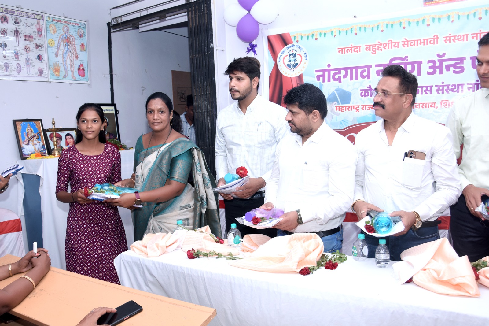 नांदगाव (प्रतिनिधी) नांदगाव शहरातील तसेच आजूबाजूच्या ग्रामीण भागातील 10 वी 12 वीच्या विद्यार्थीनीना वैद्यकीय क्षेत्रात करियर करण्यासाठी नालंदा नर्सिंग व पॅरामेडिकल कौशल्य विकास संस्था सर्वपरीने मदत करेल आपल्या पाल्यानी मुलीच्या करीयर संदर्भात एकदा भेट द्यावी असे स्पष्ट मत शहरातील प्रसिद्ध डॉ सुनील तुसे यांनी व्यक्त केले नालंदा नर्सिंग आणि पॅरामेडिकल कौशल्य विकास संस्थेच्या कार्यक्रमात ते बोलत होते यावेळी मंचावर डॉ शशांक तुसे,डॉ यश कासलीवाल, ऋषीकेश दायमा,ऍड अभिलाषा दायमा,शिवकण्या सौ संगिता सोनवणे, सरिता कुलकर्णी, भाग्यश्री खैरणार, वैभव रौदाळे, साक्षी खैरणार, स्वाती खैरणार, पूनम खोडे, संस्थेचे संचालक सागर आहेर आदि उपस्थित होते. नांदगाव शहरातील तसेच तालुक्यातील तरुणींना मेडिकल क्षेत्रात करीयर करण्यासाठी नालंदा नर्सिंग आणि पॅरामेडिकल कौशल्य विकास संस्थेची महत्वाची भूमिका आहे या संस्थेच्या विद्यार्थीनीच्या स्वागत कार्यक्रमात अनेक मान्यवरांनी आपले मनोगत व्यक्त केले या संस्थेत सरकारी कोर्स सुविधा उपलब्ध असुन मुलींनी याचा फायदा घ्यावा असे आवाहन करण्यात आले आहे.