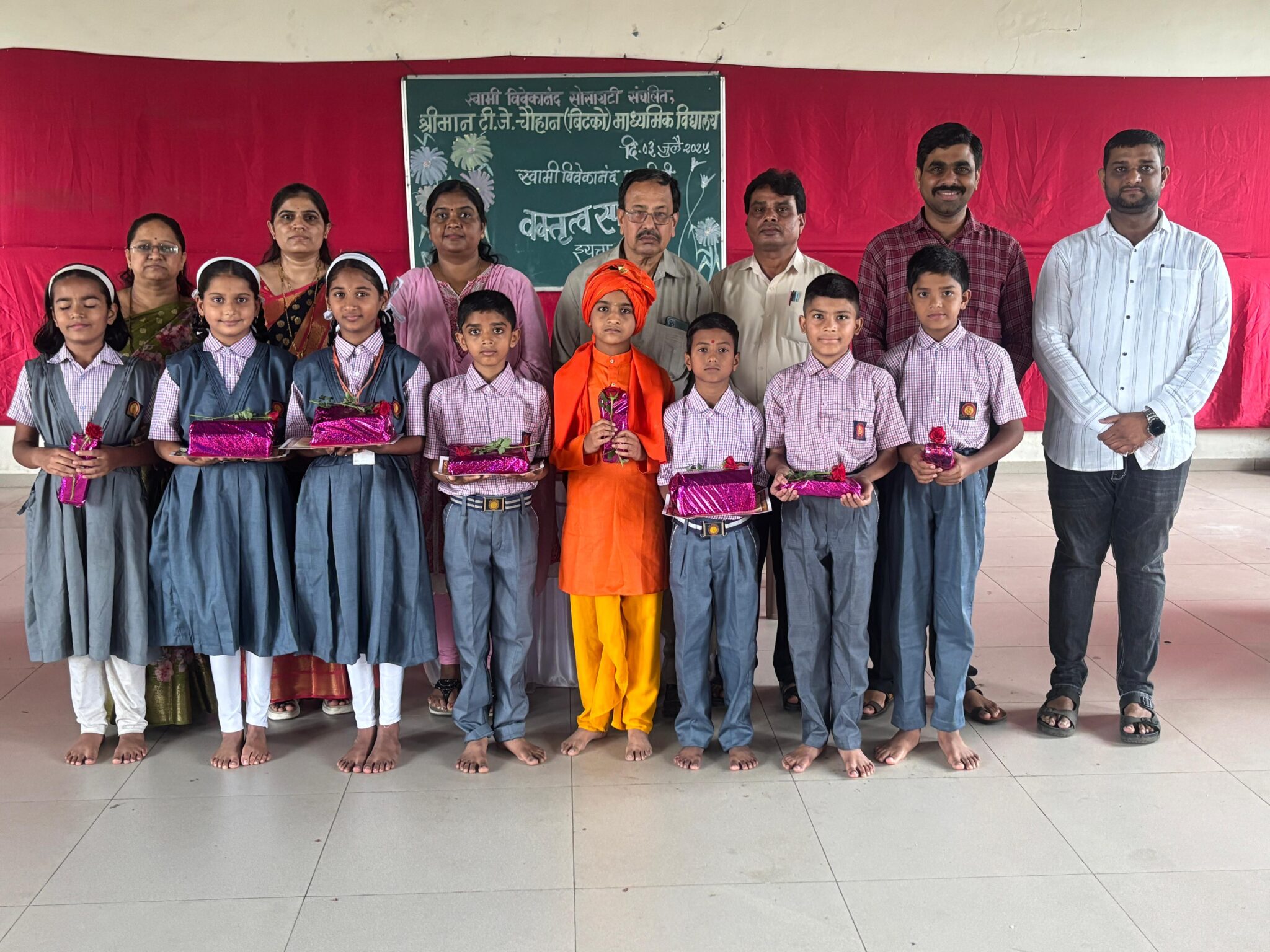 नाशिक (प्रतिनिधी). स्वामी विवेकानंद सोसायटी संचलित, श्रीमान टी जे चौहान (बिटको) माध्यमिक विद्यालय ,मोरवाडी सिडको या शाळेत 4 जुलै म्हणजे स्वामी विवेकानंद यांची पुण्यतिथी या दिनाचे औचित्य साधून इयत्ता पाचवीच्या वर्गांची वकृत्व स्पर्धा आयोजित करण्यात आली होती. यामध्ये सुरुवातीला वर्ग वर्गात स्पर्धा घेण्यात आली व यातून फक्त अंतिम फेरीसाठी आठ विद्यार्थ्यांची निवड करण्यात आली. या आठ विद्यार्थ्यांनी मान्यवर परीक्षकांसमोर आपले वकृत्व कला ही सादर केली. या स्पर्धेचे परीक्षक म्हणून शाळेतील ज्येष्ठ शिक्षक श्री पानपाटील सर यांनी कामकाज पाहिले. या स्पर्धेमध्ये प्रथम क्रमांकाचे पारितोषिक कु.हिमांशू वाघ या विद्यार्थ्याला मिळाले. द्वितीय क्रमांक कु.गौरी अनिल महाजन, तृतीय क्रमांक पूर्वा गामणे तर तसेच उत्तेजनार्थ बक्षीस कु अथर्व शेळके या विद्यार्थ्यांना मिळाले. या सर्व विद्यार्थ्यांना बक्षीस देऊन शाळेच्या मुख्याध्यापिका, मान्यवर परीक्षक यांच्यातर्फे गौरविण्यात आले.सदर स्पर्धेसाठी शाळेच्या मुख्याध्यापिका आदरणीय दळे मॅडम ,पर्यवेक्षक श्री गहानकरी सर यांचे मार्गदर्शन लाभले. कार्यक्रमाचे सूत्रसंचालन श्रीमती आव्हाड मॅडम यांनी केले तर आभार प्रदर्शन श्रीमती सुरसे मॅडम यांनी केले.
