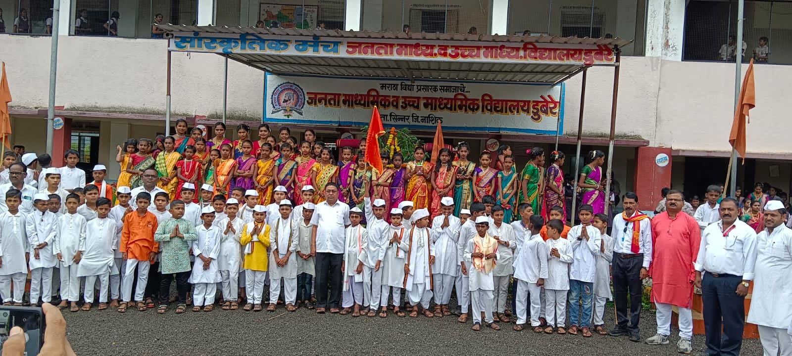 सिन्नर( प्रतिनिधी):- डुबेरे येथील जनता माध्यमिक व उच्च माध्यमिक विद्यालयातील विद्यार्थ्यांनी आषाढी एकादशीच्या निमित्ताने मविप्र संस्थेचे सिन्नर तालुका संचालक कृष्णाजी भगत यांच्या मार्गदर्शनाखाली विद्यालयाच्या प्रागणांत आकर्षक व सुंदर गोल रिंगण केल्याने विद्यार्थ्यांसह पालकांच्या डोळ्यांचे पारणे फिटले.