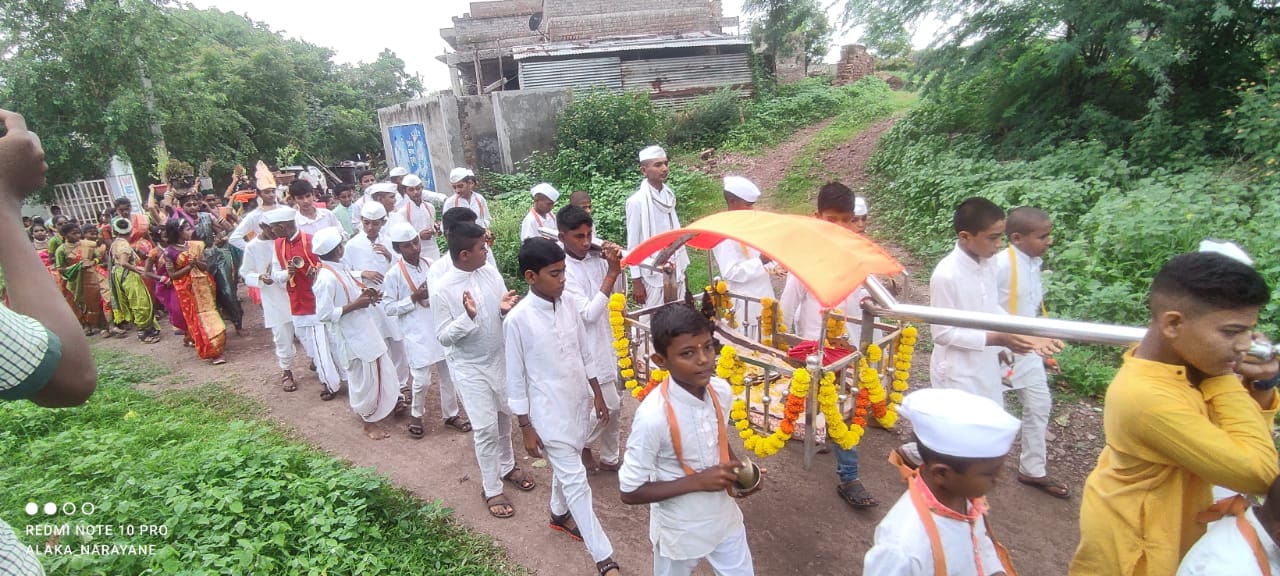 नांदगाव(प्रतिनिधी).शनिवार दि. ४ जुलै २०२५ आज रोजी विद्यालयाच्या वतीने आषाढी एकादशीच्या पार्श्वभूमीवर गावातून दिंडी सोहळ्याचे आयोजन करण्यात आले होते. प्रसंगी सजवलेल्या पालखितून विठ्ठल रखुमाईच्या मुर्ती तसेच ग्रंथराज ज्ञानेश्वरीची स्थापना करून भव्य मिरवणूक काढण्यात आली. प्रसंगी नस्तनपूर वारकरी संस्थान मधील गायक वादक विद्यार्थी तसेच गावातील भजनी मंडळ, शाळेचे विद्यार्थी, मुख्याध्यापक शिक्षक शिक्षकेतर कर्मचारी, ग्रामस्थ यांच्या सहकार्याने दिंडी सोहळ्यास सुरूवात झाली. शाळेपासून निघालेली दिंडी हनुमान मंदिरचौक , ग्रामपंचायत चौक, साईबाबा चौक अशी गावातील चौकाचौकातून नाचत गात व फुगड्या खेळत परत शाळेजवळ पोहचली. गावातून दिंडी जात असताना गावातील माताभगीनींनी पालखीतील भगवान विठ्ठलाच्या मुर्तीचे मनोभावे पूजन केले व ग्रामस्थांनी दर्शन घेतले. कुमारी अपेक्षा सोर हिने भगवान विठ्ठल व कुमारी मृणाली मोरे हिने माता रूख्मीनीच्या पेहरावात सर्वांचे लक्ष वेधून घेतले. ईतर विद्यार्थीनींनी नउवारी साडी व डोक्यावर तुळशी वृंदावन घेत साक्षात माऊलींच्या दिंडी सोहळ्याचे चित्र उभे केले. अनेक विद्यार्थ्यांनी वारकऱ्यांच्या वेशभूषेत अक्षरशः पंढरपूरच्या दिंडी सोहळ्याची आठवण करून दिली. टाळ मृदंगाच्या व हरिनामाच्या गजरात गावातील वातावरण भक्तीमय झाले. सेवटी शाळेच्या प्रांगणात मोठा रिंगण सोहळा रंगला. यात नस्तनपूर संस्थानचे महाराज मंडळी, शाळेचे विद्यार्थी, विद्यार्थीनी शिक्षक शिक्षकेतर कर्मचारी वृंद सहभागी झाले. टाळ मृदंगाच्या गजरात विद्यार्थी विद्यार्थीनी व शिक्षक फुगडी खेळण्यात दंग झाले. सोहळ्यातील गायन वादन, सजावट ई.साठी भजनी मंडळातील मा. मधुभाऊ घोटेकर, नानाभाऊ तांदळे, दादाभाऊ जाधव, रविंद्र गरूड, नवनाथ सोमवंशी, दत्ताभाऊ घोटेकर, दिपक आहेर,गोकुळ जाधव, राजु मवाळ, प्रमोद सोनवणे, संदीप पाटील , निलेश चाकणकर, रविंद्र जाधव शालेय व्यवस्थापन समिती अध्यक्ष अनिल बोरसे, आबासाहेब सोनवणे व संदीपभाऊ मवाळ मित्रमंडळाचे मोलाचे सहकार्य लाभले. कार्यक्रमाची संकल्पना शाळेचे मुख्याध्यापक मा. काशिनाथ गवळी यांची होती तर जेष्ठ शिक्षक मा. संजय कांदळकर, श्रीमती अलका शिंदे, मा. कैलास पठाडे, मा. लक्ष्मण जाधव, मा. उत्तम सोनवणे,मा. संदीपभाऊ मवाळ, मा. आबासाहेब सोनवणे यांनी विशेष परिश्रम घेऊन अनमोल सहकार्य केले. विजय शिक्षण प्रसारक मंडळाच्या पदाधिकारी व संचालक मंडळाने कार्यक्रम यशस्वीरित्या पार पाडल्याबद्दल शुभेच्छा देऊन सर्वांचे कौतुक केले.