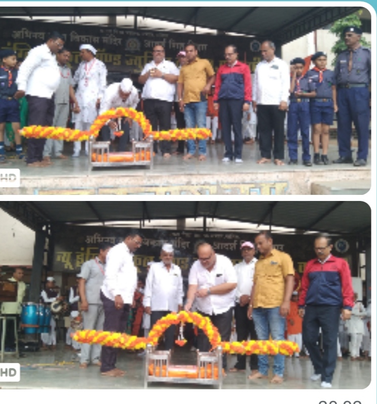 ्वडांगळी..(प्रतिनिधी). येथील मराठा विद्या प्रसारक समाज संस्था संचलित न्यू इंग्लिश स्कूल व उच्च माध्यमिक विद्यालय तसेच अभिनव बालविकास मंदिर या विद्यालयात आषाढी एकादशी निमित्त आज पारंपारिक दिंडीचे आयोजन करण्यात आले होते. यावेळी कार्यक्रमाचे अध्यक्ष माध्यमिक शालेय समितीचे अध्यक्ष सुदेश दादा खुळे हे होते. कार्यक्रमाची सुरुवात विठ्ठल रखुमाई यांच्या मूर्तीचे पूजन करून करण्यात आली. माध्यमिक शालेय समितीचे अध्यक्ष सुदेश दादा खुळे यांच्या हस्ते पालखीचे पूजन करण्यात आले.