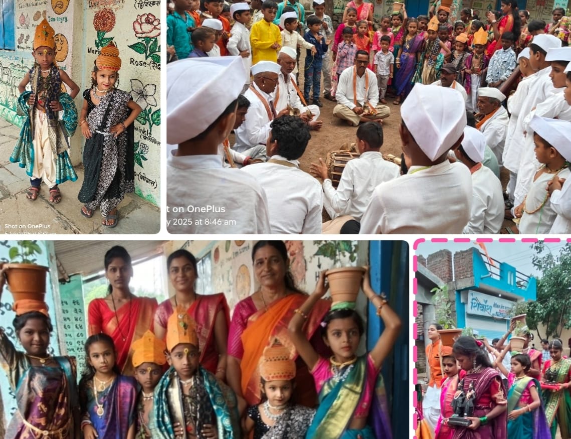 हिरवळ (खुर्द) आषाढी एकादशी निमित्त शनिवारी प्रा. शाळा हिसवळ खुर्द,आहेर वस्ती शाळा तसेच माध्यमिक विद्यालय हिसवळ खुर्द आणि गांवकरी भजनी मंडळ यांनी वारी पंढरीची दिंडी सोहळ्यात उत्स्फूर्त सहभाग घेतला.लहान चिमुकले छान विठ्ठल रखुमाई बनले.गावातील फेरीत ठिकठिकाणी विठ्ठलाची व रखूमाईचे बायकांनी औक्षण केले.अशा आनंदमय प्रसंगी विठूरायाची दुमदुमली पंढरी सारखे रूप आले होते.गावक-यांनी विद्यार्थ्यांचे व सर्व शिक्षकांचे कौतुक केले. हा आनंद सोहळा चिमुकल्यांच्या चेहऱ्यावर उमटुन दिसत होता.