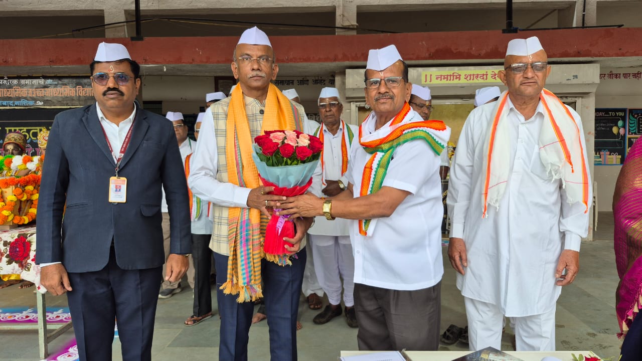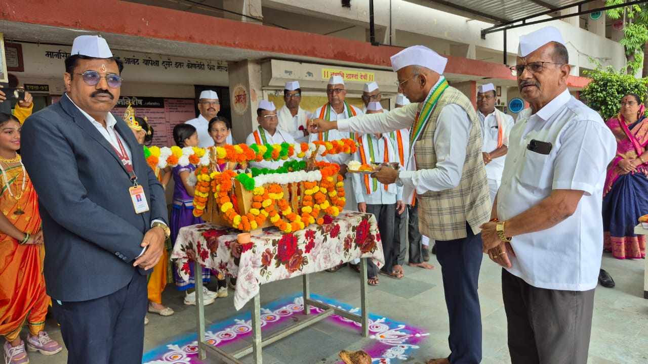 मखमलाबाद { वार्ताहर } = मराठा विद्या प्रसारक समाजाचे श्री छत्रपती शिवाजी महाराज माध्यमिक व उच्च माध्यमिक विद्यालय मखमलाबाद येथे आषाढी एकादशी निमित्त पालखी दिंडी सोहळा मोठ्या उत्साहात पार पडला. कार्यक्रमास प्रमुख पाहुणे म्हणून मविप्र संस्थेचे सरचिटणीस ॲड.नितीन ठाकरे,संचालक रमेश आबा पिंगळे उपस्थित होते. याप्रसंगी व्यासपीठावर उच्च माध्यमिक स्कूल कमिटी अध्यक्ष पंडितराव पिंगळे,ग्रंथमित्र रामचंद्र अर्जुन काकड सर सार्वजनिक वाचनालयाचे अध्यक्ष रामदास पिंगळे,माजी नगरसेवक पुंडलिकराव खोडे,स्कूल कमिटी सदस्य ज्येष्ठ सभासद विश्वनाथ पिंगळे,दिलीपराव पिंगळे,मधुकर पिंगळे,नारायण वाघ,वसंतराव पिंगळे,बाळासाहेब पिंगळे,चित्रा तांदळे,राजेंद्र ढबले,प्रभाकर फडोळ,भास्कर तांबे,प्राचार्य संजय डेर्ले,अभिनवचे मुख्याध्यापक प्रमोद ठाकरे, पर्यवेक्षक सुनील पाटील आदी उपस्थित होते.मान्यवरांच्या शुभहस्ते छत्रपती शिवाजी महाराज प्रतिमापूजन व सरस्वती पूजन करण्यात आले.सांस्कृतिक कमिटी प्रमुख ज्येष्ठ शिक्षिका दिपाली कोल्हे यांनी प्रास्ताविक केले.प्रस्ताविकात त्यांनी आषाढी एकादशीचे महत्त्व सर्व विद्यार्थ्यांना सांगितले,तसेच कार्यक्रमाची रूपरेषा सादर केली. प्राचार्य संजय डेर्ले यांच्या शुभहस्ते सर्व प्रमुख पाहुण्यांचा शाल व पुष्पगुच्छ देऊन सत्कार करण्यात आला.मविप्र संचालक रमेश आबा पिंगळे यांनी आषाढी एकादशीचे महाराष्ट्रातील धार्मिक महत्त्व,वारकऱ्यांची दिंडीची परंपरा याचे महत्त्व सांगितले.सर्व विद्यार्थ्यांना व शालेय परिवाराला त्यांनी मनःपूर्वक शुभेच्छा दिल्या.त्यानंतर संगीत शिक्षक तुकाराम तांबे व त्यांच्या गीतमंचाने विठ्ठल रुक्मिणीची आरती करून मान्यवरांच्या शुभहस्ते ज्ञानेश्वरी ग्रंथ व विठ्ठल रुक्मिणी मूर्तीचे,पालखीचे पूजन करण्यात आले.मविप्र संस्थेचे सरचिटणीस ॲड.नितीन ठाकरे व संचालक रमेश आबा पिंगळे यांनी पालखी घेऊन दिंडी सोहळ्यास प्रारंभ केला.इयत्ता ५ वी ते १० वी च्या विद्यार्थ्यांनी पारंपारिक वेशभूषा सादर केली होती.यामध्ये विठ्ठल रुक्मिणीची, विविध संतांची वेशभूषा तसेच मुलींनी नऊवारी साडी,डोक्यावर तुळस व मुलांनी वारकरी पोशाख,हातात टाळ,मृदंग,वीणा घेऊन दिंडीत सहभागी झाले होते.मखमलाबाद गावातून दिंडी सोहळा मोठ्या उत्साहात पार पडला यावेळेस अनेक महिलांनी पालखीचे पूजन केले.गावातील बस स्टॅन्ड,मुख्य चौकामध्ये व शालेय क्रीडांगणावर विद्यार्थ्यांचा अतिशय सुंदर असा रिंगण सोहळा पार पडला.यामध्ये गोल रिंगण,उभे रिंगण,फुगडी यांचा विद्यार्थी व शिक्षकांनी भरपूर आनंद घेतला.संतांच्या घोषणांनी, अभंगांनी,टाळमृदुंगांनी, रांगोळ्यांनी परिसर भक्तीमय 