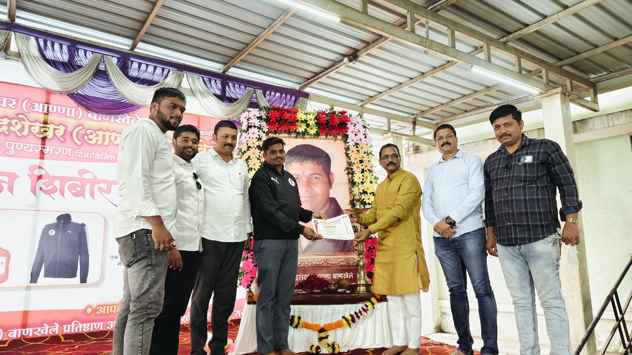 नाशिक (प्रतिनिधी)….आज आंबेगाव तालुक्यातील मंचर शहरात विश्व हिंदु परिषद बजरंग दल व धर्मवीर चंद्रशेखर (अण्णा) बाणखेले प्रतिष्ठान यांच्या वतीने धर्मवीर चंद्रशेखर अण्णा बाणखेले यांच्या 14 व्या पुण्यस्मरण दिनानिमित्त आयोजित महारक्तदान शिबिराला भाजपा नेते जनसेवक श्री संजय भाऊ थोरात यांनी भेट दिली व धर्मवीर चंद्रशेखर अण्णा बाणखेले यांच्या प्रतिमेचे पूजन करून अभिवादन केले.तसेच सर्व वीर बजरंगी यांचे चालू असलेल्या कामाचे कौतुक करून शुभेच्छा दिल्या..रक्तदान हेच श्रेष्ठदान…