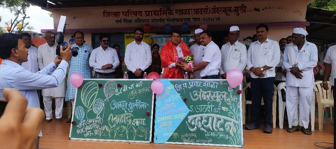 .येवला ता. 10 : अंदरसुल जि.प. आदर्श मुलींच्या शाळेचा गुणवत्तेचा आलेख वाढता असून शाळा राज्यात आदर्श ठरावी अशीच आहे. शाळेत बोलली जाणारी मराठी भाषेबरोबरच जपानी भाषा, इंग्रजी भाषेवरील प्रभुत्व नक्कीच वाखाणण्याजोगे आहे. असे मत अध्यक्ष स्थानावरून बाळासाहेब लोखंडे साहेब यांनी व्यक्त केले. डिजिटल शाळा अंतर्गत या शाळेला रोबोटिक लॅब, सायन्स लॅब, आयडियल कम्प्युटर सेंटर लॅब उपलब्ध असून त्याचा उपयोग नक्कीच विद्यार्थ्यांच्या ज्ञानात भर पडण्यासाठी होणार आहे. विज्ञान आणि भाषा विकास प्रयोगशाळा या माध्यमातून विद्यार्थी गुणवत्तेची कास धरत आहे. ही शिक्षण विभागासाठी भुषणावह बाब आहे. असे मत येवला तालुक्याचे गट विकास अधिकारी संदीप वायाळ यांनी व्यक्त केले. गावातील विविध संस्थांचे पदाधिकारी , ग्रामपालिका, ग्रामस्थ यांचे शाळेला असलेले सहकार्य आणि विद्यार्थ्यांप्रती शिक्षकांच्या असलेला प्रामाणिकपणाचे हे फळ आहे. असे मत यावेळी गटशिक्षणाधिकारी संजय कुसाळकर यांनी व्यक्त केले. ता. 9 जुलै रोजी जिल्हा परिषद प्राथमिक आदर्श शाळा अंदरसुल मुली येथे मा.ना. छगनरावजी भुजबळ साहेब (अन्न व नागरी पुरवठा मंत्री) आणि मा.ना.दादाजी भुसे साहेब ( शिक्षणमंत्री महाराष्ट्र राज्य) यांच्या विशेष प्रयत्नातून अंदरसुल मुली शाळेला नवीन आठवीच्या वर्गाची मान्यता मिळाल्यामुळे मा.ना.छगनरावजी भुजबळ साहेब यांचे स्वीय सहाय्यक बाळासाहेब लोखंडे यांच्या हस्ते इयत्ता आठवीच्या उद्घाटन करण्यात आले. यावेळी इयत्ता आठवीच्या वर्गाची बारा वर्षांची प्रतीक्षा संपल्याचे समाधान सर्व पालक व ग्रामस्थांनी आपल्या मनोगतातून व्यक्त केले यावेळी कार्यक्रमाला माजी जि.प. अध्यक्ष राधाकिसन आप्पा सोनवणे, मार्केट कमिटी मा.सभापती किसन काका धनगे, मार्केट समिती मा.सभापती मकरंदभाऊ सोनवणे,गटविकास अधिकारी संदिप वायाळ, शिक्षणाधिकारी संजय कुसाळकर ,केंद्रप्रमुख.नारायण डोखे, सरपंच .लताताई जानराव,नवनियुक्त उपसरपंच अमोल सोनवणे,शाळा व्यवस्थापन समिती सदस्य, सुनील देशमुख, गणेश कासार, ग्रामपंचायत सदस्य योगेश जहागीरदार, भाऊसाहेब कचरे, एकनाथ जानराव, किशोर बागुल, इंडियन गॅस संचालक दीपक जगताप, जगन्नाथ जगताप, शाळा व्यवस्थापन समितीचे अध्यक्ष जयश्री माळी, पूनम गायकवाड, रूपाली खानदेशी, अशोक घोडेराव, ज्ञानेश्वर सूर्यवंशी आदि मान्यवर ग्रामस्थ पालक उपस्थित होते. कार्यक्रम यशस्वीतेसाठी मुख्याध्यापक बाबासाहेब बेरगळ, शिक्षक विलास जानराव, मुक्तानंद सोमासे, किशोरी नाकोड, सुमित्रा दातीर, जयश्री पालवे, मनीषा कंठाळे, अंशकालीन निदेशक गरुड, कांडेकर यांनी प्रयत्न केले. सूत्रसंचालन आशा वर्पे तर शाळेचे मुख्याध्यापक बाबासाहेब बेरगळ यांनी उपस्थितां