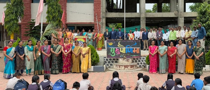 ओझर: दि.१० वार्ताहर येथील मराठा विद्या प्रसारक समाजाच्या माधवराव बोरस्ते विद्यालयात महर्षी व्यास जयंती गुरुपौर्णिमा म्हणून साजरी करण्यात आली. प्रास्ताविक मुख्याध्यापक सोपान वाटपाडे यांनी केले . प्रारंभी प्रमुख अतिथी प्रितेश भार्गवे सचिव सेवा ऑटोमोटिव्ह सुकेणे, सुमित सूर्यवंशी अमित साळी जीशान शेख श्रीकांत सोनवणे यांच्या हस्ते सर्व सेवकांना गुलाबपुष्प देण्यात आले. कार्यक्रमाची सुरुवात संगीत शिक्षिका शितल आहेर यांनी, गुरुर्ब्रह्मा गुरुर्विष्णु गुरुर्देवो महेश्वरा गुरु साक्षात परब्रम्ह तस्मै श्री गुरुवे नमः या श्ल़ोकाने केली. याप्रसंगी विद्यार्थ्यांनी शिक्षक व कर्मचारी बांधवांना गुलाबपुष्प देऊन वंदन केले. अध्यक्षीय भाषणात प्रितीश भार्गवे यांनी गुरुनिष्ठा कर्तव्ये श्रद्धा भक्ती विश्वास वात्सल्य तसेच आपणास गुरूमुळे ज्ञान व मार्गदर्शन मिळते असे सांगितले. यावेळी विद्यार्थी व शिक्षिका मंगल सावंत सरोज खालकर सीमा पाटील यांनी गुरुौर्णिमेची महती विद्यार्थ्यांना सांगितली. महर्षी व्यासाप्रती आदरभाव व्यक्त करताना मुख्याध्यापक सोपान वाटपाडे म्हणाले, गुरु म्हणजे केवळ शिकवणारे नव्हे तर जीवनात दिशा दाखवणारे प्रकाशस्तंभ आहेत.