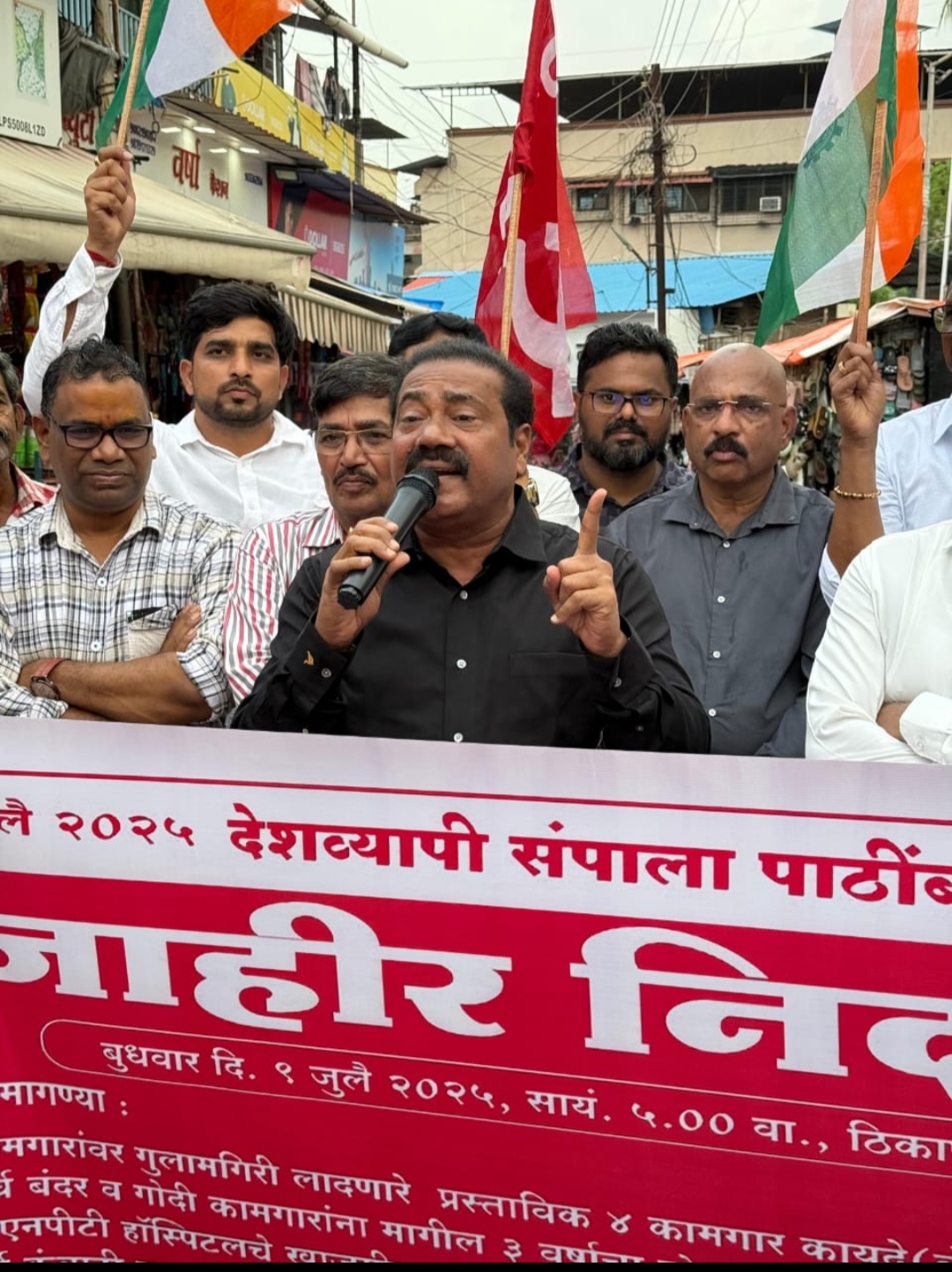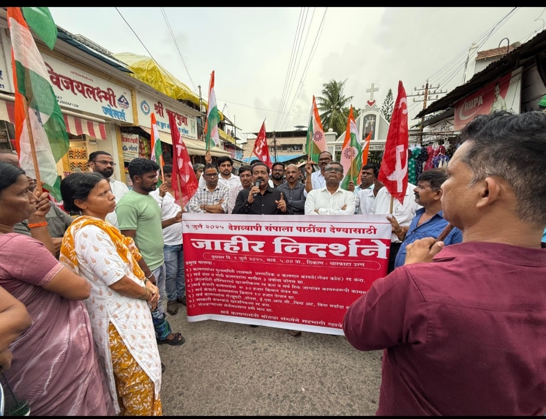 उरण दि ११(विठ्ठल ममताबादे )”केंद्र सरकार गेल्या ११ वर्षांपासून भांडवलदारांच्या भल्यासाठी सर्वसामान्यांचा बळी देऊ पाहत आहे. नव्याने कामगारांवर लादले जाणारे कायदे म्हणूजे कामगारांच्या न्याय हक्कांवर गदा आहे. त्यामुळे भांडवलदारांच्या भल्यासाठी सर्वसामान्यांचा बळी देऊ नका. या देशातला कामगार आणि शेतकरी जिवंत राहायला हवा, सन्मानाने जगायला हवाच. त्यामुळे कामगार व शेतकरी देशोधडीला लागेल अशी भूमिका घेणे केंद्र सरकारला महागात पडेल. अनेक मोठ्या सरकारी कंपन्यांचे खासगीकरण सुरू आहे, ते केवळ भांडवलदारांच्या फायद्यासाठीच, त्यामुळे हे सर्व थांबले नाही तर देशातील सर्वसामान्य माणूस पेटून उठायला वेळ लागणार नाही. त्यामुळे प्रत्येक कामगाराला किमान वेतन ३० हजार रुपये हे मिळायलाच हवे,’’