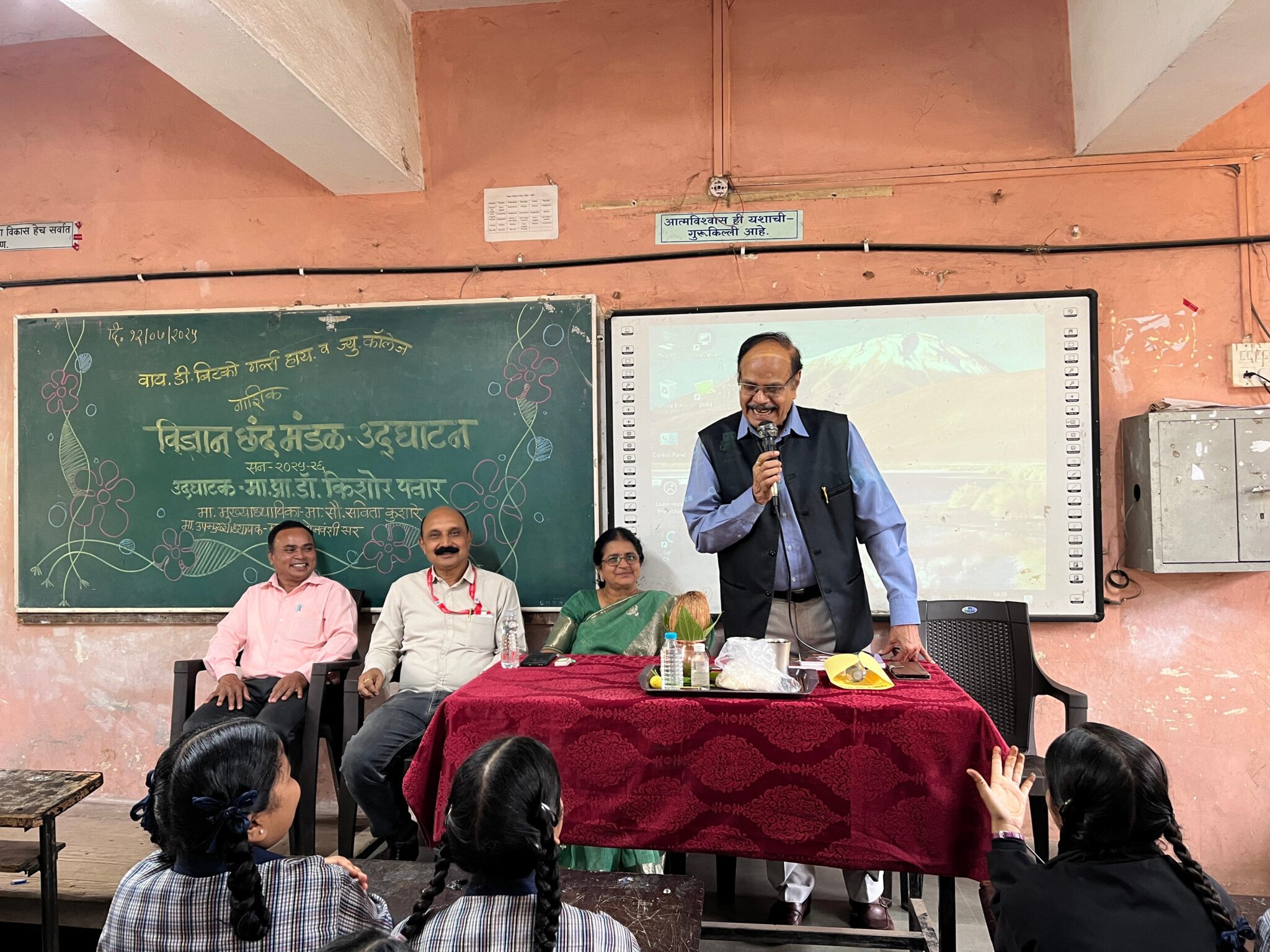 नाशिक (प्रतिनिधी ) -दि न्यू एज्युकेशन इन्स्टिट्यूट,नाशिक संचलित यशोदामाता डायाभाई बिटको गर्ल्स हायस्कूल व ज्युनिअर काॉलेज,नाशिक.या शाळेत आज शनिवार दि.१२/०७/२०२५ रोजी विज्ञान छंद मंडळाचे उदघाटन करण्यात आले.यावेळी उद्घाटक म्हणून के.टी.एच.एम.कॉलेजचे माजी प्राचार्य डॉ.किशोर पवार उपस्थित होते.सरस्वती पूजन व थोर शास्त्रज्ञ डॉ.ए.पी.जे.अब्दुल कलाम यांच्या प्रतिमेस पुष्पहार अर्पण करून विज्ञान छंद मंडळाचे उद्घाटन करण्यात आले.यावेळी शाळेच्या मुख्याध्यापिका मा.सौ.सविता कुशारे यांचे शुभहस्ते त्यांचा सत्कार करण्यात आला.विज्ञान छंद मंडळाच्या प्रमुख सौ.चेतना टोपले मॅडम यांनी प्रास्ताविकातून विज्ञान छंद मंडळाचे उदिष्ट्ये सांगितले. विज्ञान विभाग प्रमुख सौ.मेघना देशपांडे यांनी प्रमुख पाहुण्यांचा परिचय करुन दिला. प्रमुख पाहुणे डॉ.किशोर पवार सरांनी शालेय वैज्ञानिक माहिती व विविध उपक्रमाबाबत विचार व्यक्त केले.