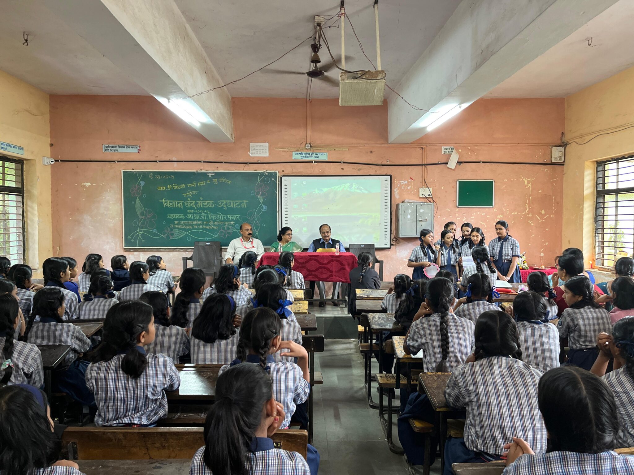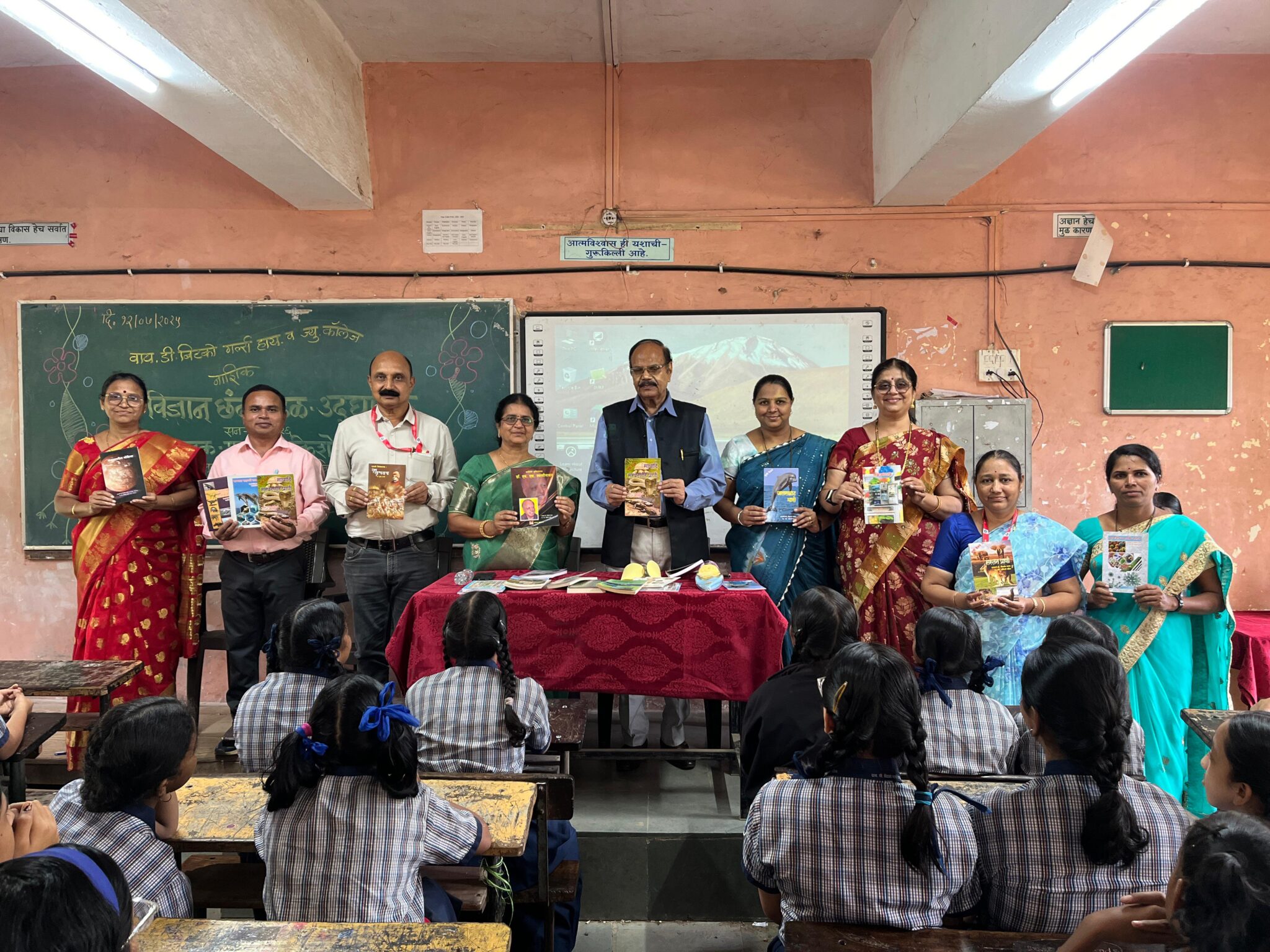 कार्यक्रमास शाळेच्या मुख्याध्यापिका सौ.सविता कुशारे ,उपमुख्याध्यापक राजेंद्र सोमवंशी व ज्युनिअर काँलेजचे उपमुख्याध्यापक मिलिंद कोठावदे , पर्यवेक्षिका सौ.सुषमा गवारे,गव्हर्निंग कौन्सिल सदस्य कैलास बागुल यांचेसह सर्व विज्ञान शिक्षक व विद्यार्थिनी उपस्थित होत्या.विज्ञान शिक्षका व छंद मंडळाच्या प्रमुख सौ.चेतना टोपले यांचेसह सौ.प्रतिभा महाजन,सौ.मेघना देशपांडे ,सौ.लता शिंदे सौ.मिनाक्षी दोंड यांनी कार्यक्रमाचे नियोजन केले. कार्यक्रमाच्या सुरुवातीला विद्यार्थिनींनी विज्ञानगीत सादर केले.सूत्रसंचालन कु.मानसी पाटील हिने तर आभार सौ.लता शिंदे यांनी मानले. फलकलेखन कलाध्यापिका सौ.सायली मुळे यांनी केले. कार्यक्रमाच्या यशस्वीतेसाठी शिक्षक व शिक्षकेतर कर्मचारी यांनी परिश्रम घेतले.