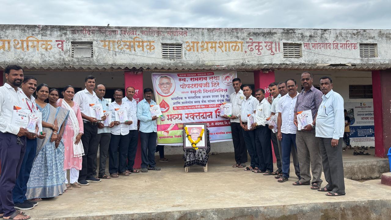 . व श्री.एस. एम.कामडी यांनी पप्पांनी केलेल्या भरीव कामगिरी चा आढावा मनोगतातून व्यक्त केला .स्मृतिदिनानिमित्त मालेगाव ब्लड सेंटर व ढेकू आश्रम शाळेतील सर्व कर्मचारी वृंद यांच्या संयुक्त विद्यमाने रक्तदान शिबिर आयोजित करण्यात आले सदरील शिबिरात गावाचे उपसरपंच श्री राजेंद्र चव्हाण, हेमराज चव्हाण यांनी स्वतः रक्तदान करून शिबिराची सुरुवात करण्यात आली आश्रम शाळेतील सर्व कर्मचारी वृंद व गावकऱ्यांनी रक्तदान करण्यात सहभाग घेतला.प्रत्येक रक्तदान करणाऱ्या रक्तदान दात्यास ब्लड बँक मालेगाव यांच्याकडून सन्मानपत्र व ट्रॉफी देण्यात आली