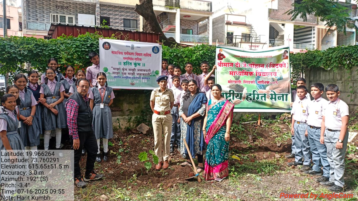 नाशिक (प्रतिनिधी ) स्वामी विवेकानंद सोसायटीचे श्रीमान टी. जे. चौहान (बिटको) माध्यमिक विद्यालय, मोरवाडी, नाशिक येथे *हरित कुंभ अंतर्गत वृक्षारोपण* कार्यक्रम घेण्यात आला. यावेळी प्रमुख अतिथी म्हणून मा. सोनाली संपत देशमुख (वनपाल सामाजिक वनीकरण नाशिक) उपस्थित होत्या. प्रमुख पाहुण्या व शाळेच्या मुख्याध्यापिका माननीय सौ. माळी मॅडम, पर्यवेक्षक श्री.गहानकरी सर यांच्या हस्ते वृक्षारोपण करण्यात आले. “माझा कुंभ माझी जबाबदारी माझा वृक्ष माझी जबाबदारी” या घोषवाक्याचा जयघोष करून विद्यार्थ्यांनी वृक्ष संवर्धनाची जबाबदारी घेतली. कार्यक्रमाच्या समारोप प्रसंगी प्रमुख पाहुण्यांनी वृक्ष संवर्धना विषयी मार्गदर्शन केले. हरितसेनेचे शिक्षक श्री. गायकवाड सर यांनी पाहुण्यांचे आभार मानले. हरित सेनेतील सर्व सभासदांनी वृक्षारोपण कार्यक्रमात सहभाग नोंदवला. अशाप्रकारे मोठ्या उत्साहात हरित कुंभ अंतर्गत वृक्षारोपणाचा कार्यक्रम पार पडला.