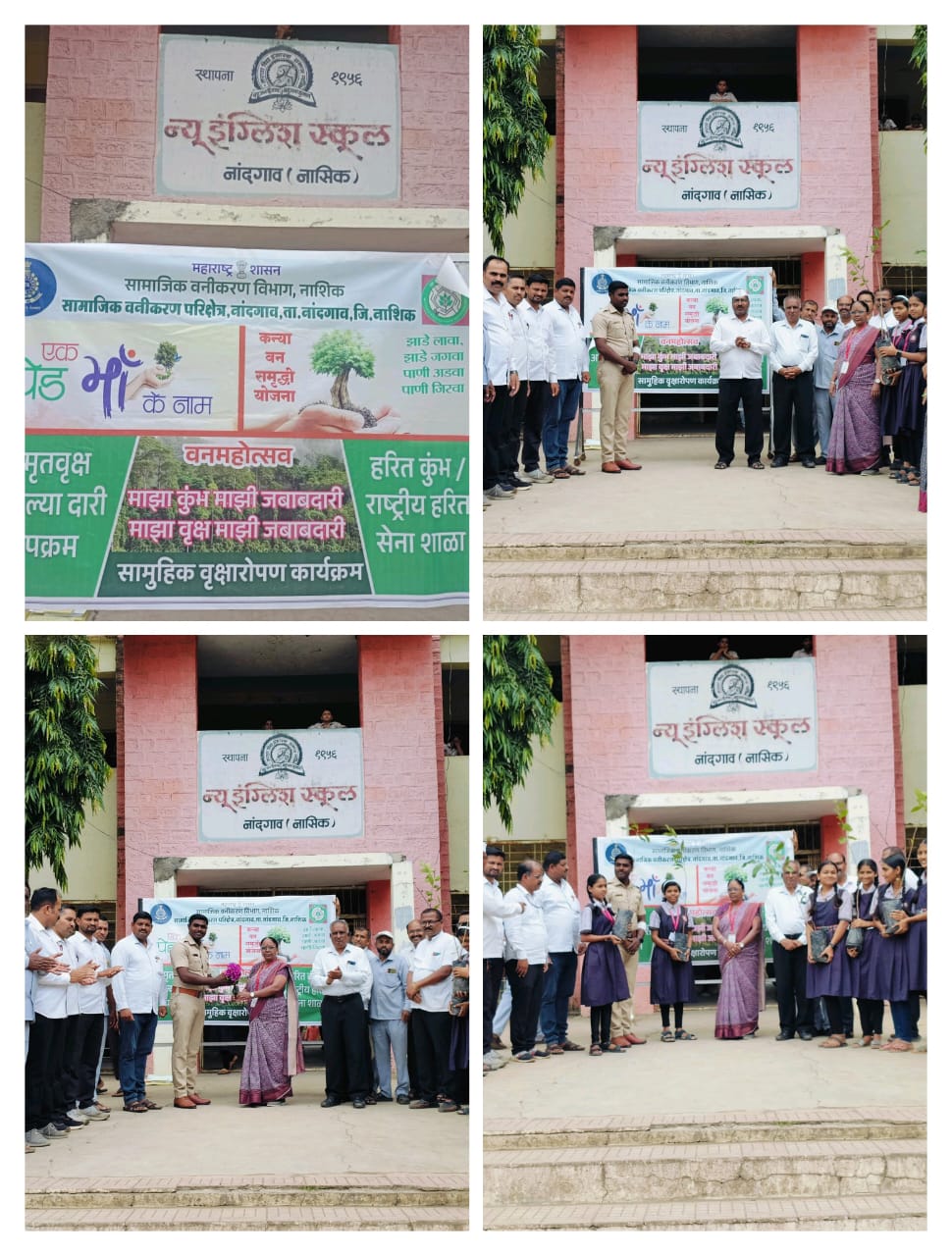 नांदगाव – (प्रतिनिधी ) दि.१६ जुलै २०२५ बुधवार* *मविप्र संचलित न्यू इंग्लिश स्कूल नांदगाव विद्यालयात हरित कुंभ अंतर्गत सार्वजनिक वृक्षारोपणाचा कार्यक्रम साजरा करण्यात आला*. *याप्रसंगी वनविभागाचे अधिकारी श्री शिंदे साहेब विद्यालयाच्या मुख्याध्यापिका श्रीमती ज्योती काळे मॅडम, पर्यवेक्षक श्री अविनाश शेवाळे सर यांच्या हस्ते विद्यालयाच्या प्रांगणात वृक्ष लागवड करण्यात आली*.*यावेळी विद्यालयाच्या प्रांगणात ‘एक पेड माॅ के नाम’ जांभूळ वृक्षांची लागवड करण्यात आली*. *या कार्यक्रमासाठी विद्यालयातील हरित सेनेचे प्रमुख श्री गजेंद्र माताडे ज्येष्ठ शिक्षक श्री मार्कंड सर, श्री भिलोरे सर ,श्री कवडे सर, श्री पाटील पी.यू सर ,श्री थोरात सर, श्री खैरनार सर, श्री कदम सर, श्री पाटील सर ,श्रीमती अहिरे मॅडम ,श्रीमती मोरे मॅडम श्री कपिल पवार, श्री संजू पवार ,समाधान आहेर ,वीरेंद्र पवार व शिक्षक, शिक्षिका व शिक्षकेतर कर्मचारी व विद्यार्थी उपस्थित होते.*