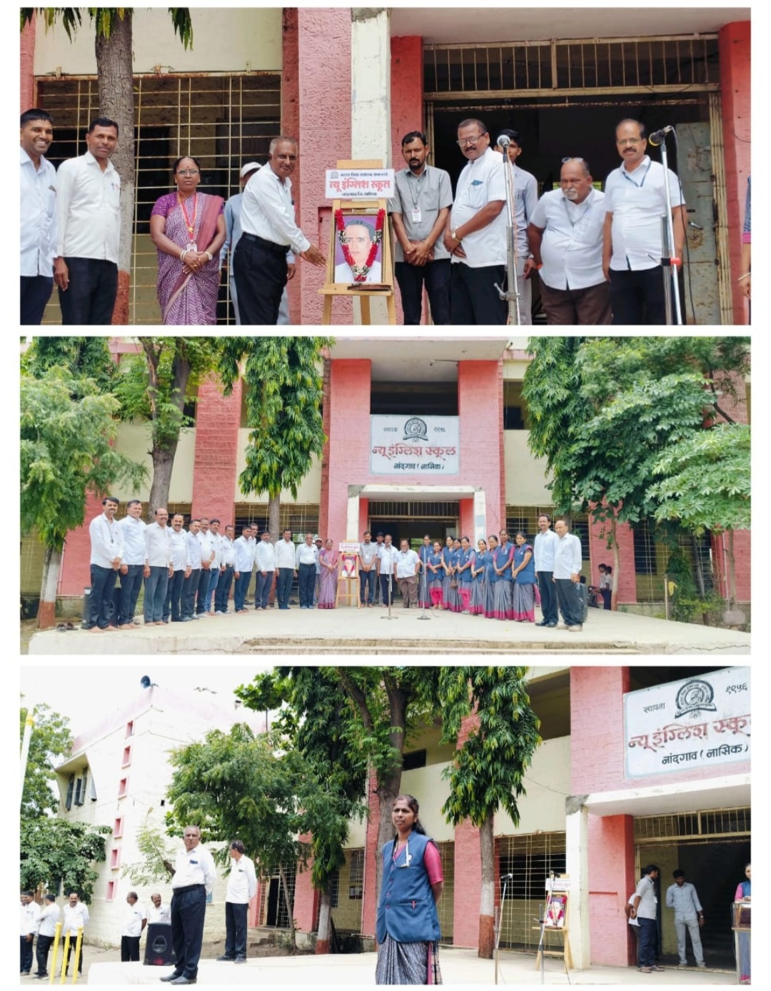 . नांदगाव – मविप्र संचलित न्यू इंग्लिश स्कूल स्कूल नांदगाव या विद्यालयात लोकशाही, साहित्य सम्राट अण्णाभाऊ साठे यांची पुण्यतिथी साजरी करण्यात आली .याप्रसंगी लोकशाही अण्णाभाऊ साठे यांच्या प्रतिमेचा पूजन विद्यालयाच्या मुख्याध्यापिका श्रीमती ज्योती काळे , पर्यवेक्षक श्री अविनाश शेवाळे सर्व शिक्षक व शिक्षिका यांच्या हस्ते करण्यात आले. विद्यालयाचा उपशिक्षिका श्रीमती स्मिता केदारे यांनी लोकशाहीर अण्णाभाऊ साठे यांच्या विषयी बोलताना अण्णाभाऊ साठे यांनी संयुक्त महाराष्ट्र चळवळी महत्त्वाची भूमिका बजावली. अण्णाभाऊंनी ‘लाल बावटा कलापथक’ स्थापन केले. त्यांनी दलित साहित्य संमेलनात “पृथ्वी ही शेषनागाचा मस्तकावर तारलेली नसून दलित आणि कामगारांचा तळहातावर तारलेली आहे”हे सांगितले. अण्णाभाऊंनी फकीरा, माकडाची माळ यासारख्या ३५ कादंबऱ्या लिहिल्या आहेत इ. माहिती सांगितली. असा महान साहित्यसम्राटाचा मृत्यू १८ जुलै १९६९ रोजी झाला.