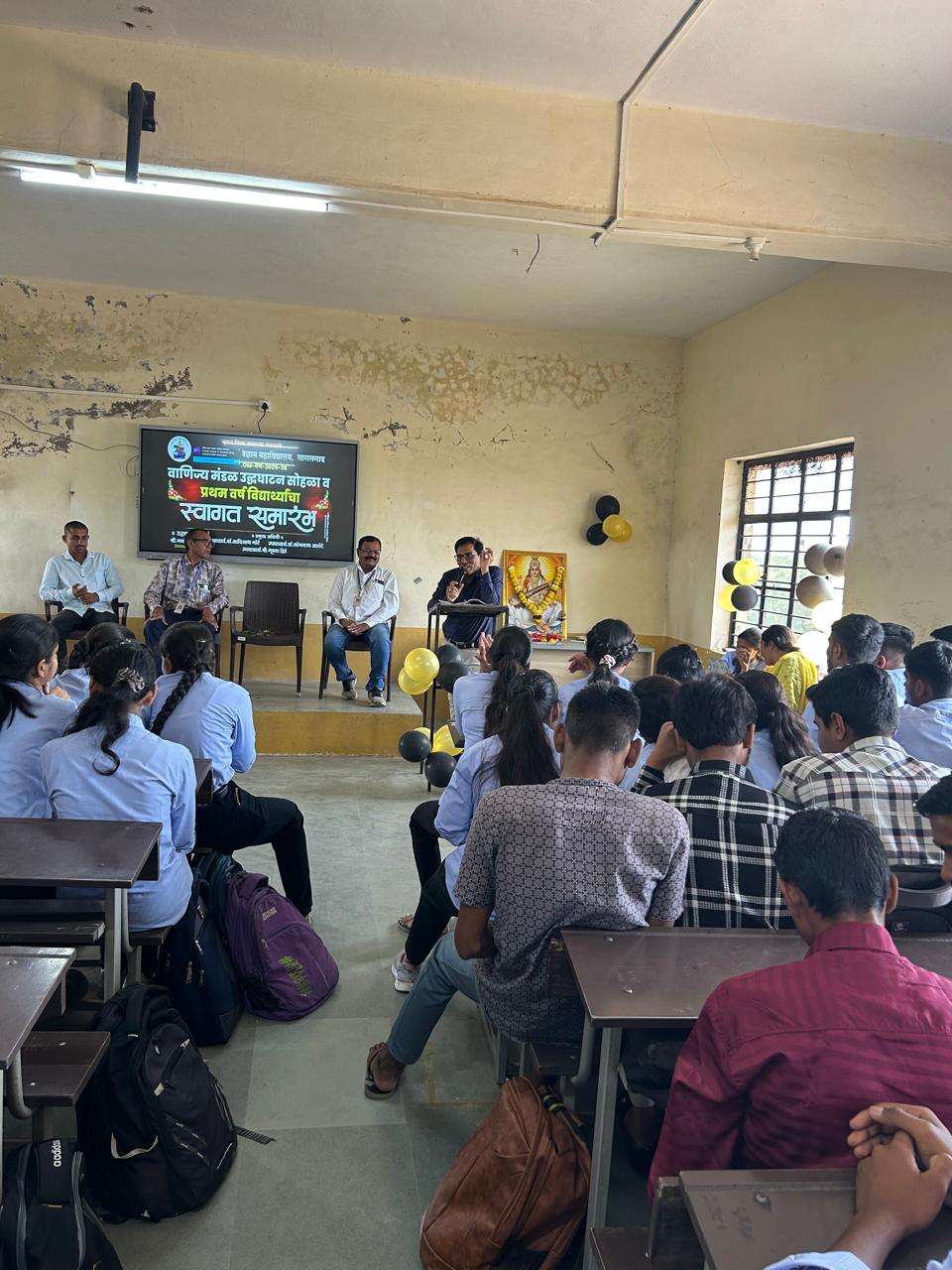 लासलगाव( प्रतिनिधी ) येथील कला, वाणिज्य व विज्ञान महाविद्यालयातील वाणिज्य विभागाच्या वतीने वाणिज्य मंडळाचे उद्घाटन व प्रथम वर्ष वाणिज्य विद्यार्थ्यांचा स्वागत समारंभ गुरुवार दिनांक १७ जुलै २०२५ रोजी संपन्न झाला. या कार्यक्रमाचे उद्घाटन लासलगाव मर्चंट को-ऑपरेटिव्ह बँकेचे CEO श्री.मनोहर जाधव यांच्या हस्ते पार पडले. त्यांनी विद्यार्थ्यांना बँकिंग, सहकार व उद्योग क्षेत्रातील संधी याविषयी सखोल मार्गदर्शन केले आणि विद्यार्थ्यांमध्ये सकारात्मक ऊर्जा निर्माण केली. या कार्यक्रमाला उपप्राचार्य डॉ.सोमनाथ आरोटे यांची विशेष उपस्थिती लाभली. त्यांनी विद्यार्थ्यांना शिस्त आणि उत्तरदायित्वाचे महत्त्व समजावून सांगितले. कार्यक्रमाचे सूत्रसंचालन साक्षी गांगुर्डे, वैष्णवी विसे, सुहानी शुक्ला, समीक्षा हिरे व अक्षदा कुलथे यांनी केले, तर आभारप्रदर्शन गौरव पालवे याने मानले. या कार्यक्रमाचे आयोजन वाणिज्य विभागाचे डॉ.मनोहर मोरे, प्रा.विरेंद्र आहेर, प्रा.सृष्टी थोरात, प्रा.राधा खांडगौरे आणि प्रा.कावेरी गुंड यांनी केले. कार्यक्रमाच्या यशस्वीतेसाठी संस्थेचे जनरल सेक्रेटरी श्री.गोविंदराव होळकर व महाविद्यालयाचे प्राचार्य डॉ.आदिनाथ मोरे यांचे मार्गदर्शन लाभले. या कार्यक्रमासाठी महाविद्यालयातील वाणिज्य शाखेचे सर्व विद्यार्थी मोठ्या संख्येने उपस्थित होते.
