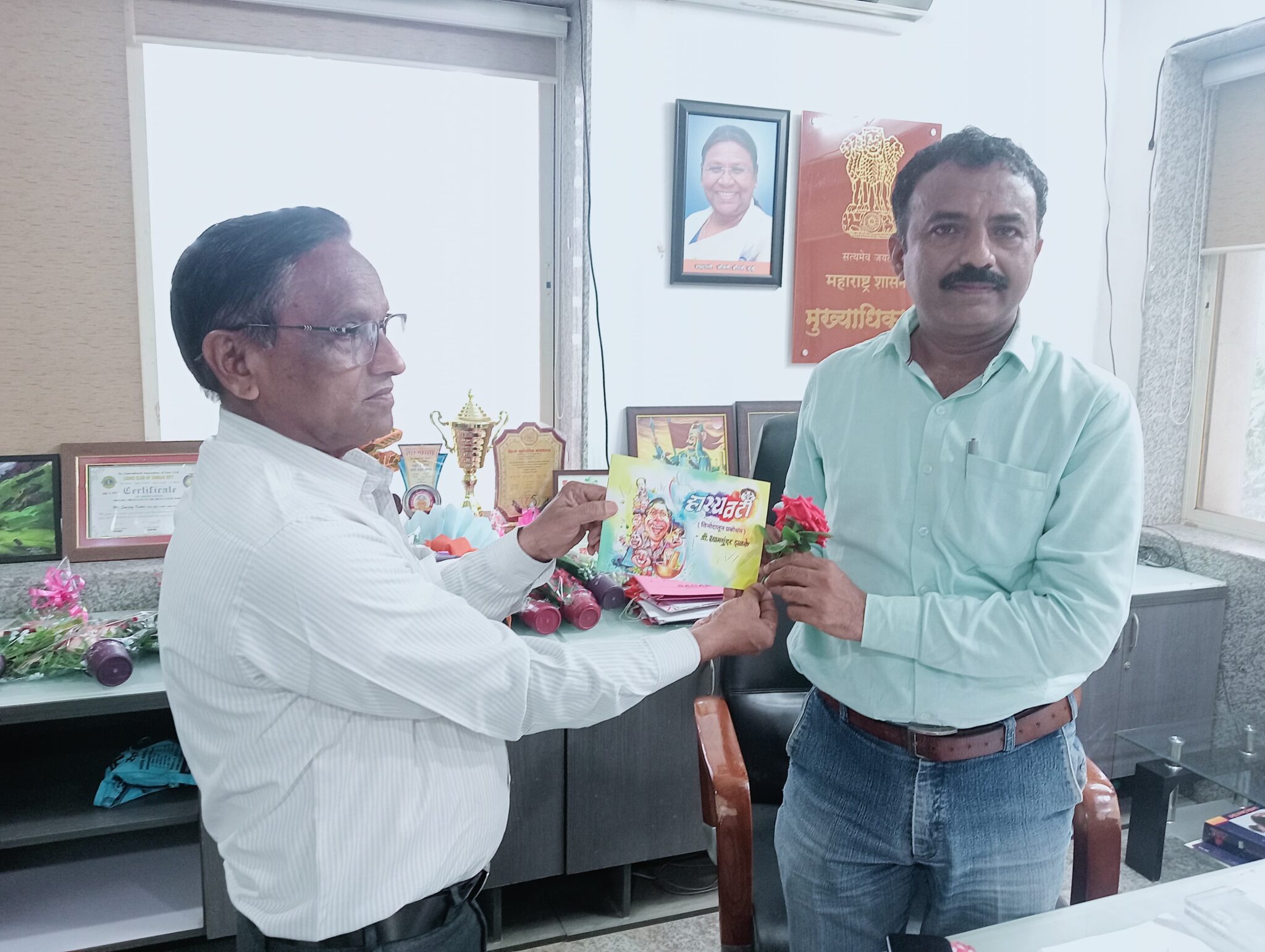 सिन्नर (प्रतिनिधी) नव्याने रुजू झालेले, अभिजित कदम यांनी नुकताच सिन्नर नगरपरिषदेचे मुख्याधिकारी म्हणून पदभार स्वीकारला. त्यांची रावेर (जि. जळगांव) येथून सिन्नर येथे बदली झाली.त्यांचा सामाजिक कार्यकर्ते डॉ.श्यामसुंदर झळके यांनी स्वलिखित,”हास्यवटी.. विनोदातून प्रबोधन” पुस्तक व गुलाबपुष्प देऊन त्यांचा सत्कार केला.यावेळी सिन्नर मधील औद्योगिक सामाजिक,राजकीय,सांस्कृतिक विषयावर अनौपचारिक चर्चा करून माहिती करून घेतली.