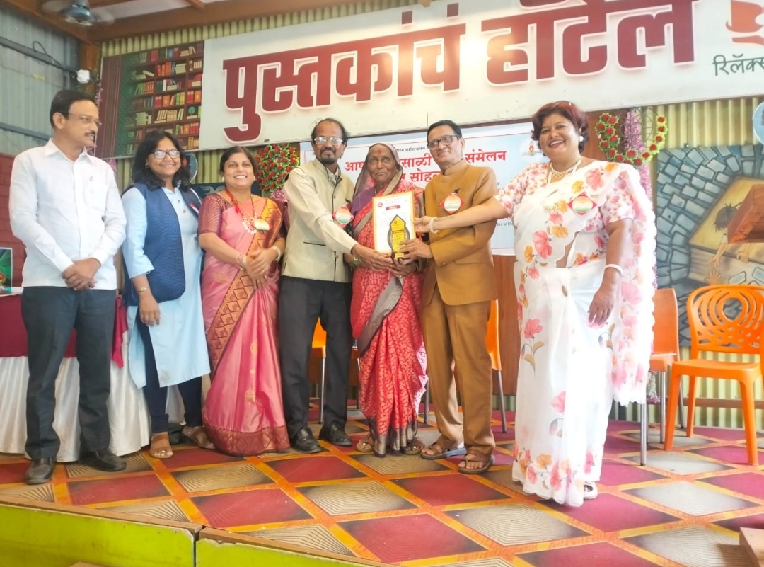 नाशिक (प्रतिनिधी )भिमाबाई जोंधळे यांच्या पुस्तकांचं हॉटेल नाशिक येथे साहित्यरंग साहित्य मंच आयोजित निमंत्रितांचा राज्यस्तरीय आषाढ पावसाळी कविसंमेलन व सन्मान सोहळा रविवारी संपन्न झाला. युवा साहित्यक सुशिलकुमार शिंदे आयोजित संमेलन अतिशय देखणे, यादगार आणि ऊर्जा व प्रेरणादायक ठरले. कविसंमेलनात उत्कृष्ट कवितेला १ते३ क्रमांक जाहीर केले. यात मराठा विद्या प्रसारक समाजाचे सेवानिवृत्त प्रबंधक व मविप्र निवृत्त सेवक संघाचे सचिव जेष्ठ कवी माणिकराव गोडसे यांच्या कविता-सादरीकरणाला प्रथम क्रमांक जाहिर होऊन भिमाबाई जोंधळे, डॉ.प्रतिभा देशमुख-चौरे, प्रा.आशा बिरारी-पाटील, सुहास टिपरे, सुशिलकुमार शिंदे सीमाराणी बागुल, बाळासाहेब गिरी यांच्या प्रमुख उपस्थितीत सत्कार करण्यात आला.