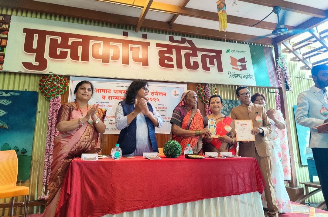 नासिक = साहित्य रंग, साहित्य मंच, नासिक आयोजित आषाढी पावसाळी कवी संमेलन नासिक च्या, आजी च्या हॉटेल मध्ये, सौं सुनंदा साहेब राव पाटील, साहित्यिक यांना “”समाज रत्न पुरस्कार “” ने सन्मानित केलें आहे. कार्यक्रम चे अध्यक्ष सौं भीमा बाई जोंधळे व स्वागत अध्यक्ष जेष्ठ साहित्यिक सुहास टिपरे यांच्या शुभ हस्ते पुरस्कार प्रदान करण्यात आलेला आहे या सन्मान बद्दल साहित्यिक क्षेत्रात असलेल्या मान्यवर यांनी सौं सुनंदा पाटील यांचे अभिनंदन केलें आहे. या वेळी सूत्रसंचालक सीमा ताई बागुल, डॉक्टर प्रतिभा देशमुख प्रा आशा बिरारी पाटील, आयोजक सुशील कुमार शिंदे व्यासपीठ वर उपस्थित होते.
