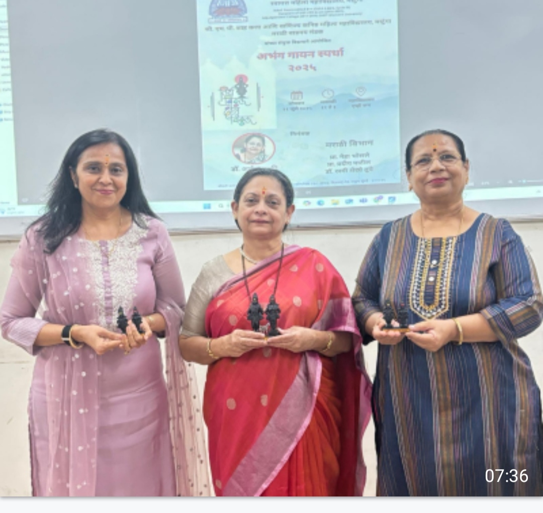 “ज्ञानेश्वरांनी ज्ञानाचा दीप प्रज्वलित केला, नामदेवांनी भक्तीचा गंध दरवळवला आणि तुकारामांनी भावनांचा महासागर उलगडला. आजच्या विद्यार्थिनी त्यांच्या अभंगांनी हेच तेज पुढे नेत आहेत,” असे विचार प्राचार्य डॉ. अर्चना पत्की यांनी आपल्या अध्यक्षीय भाषणात व्यक्त केले. त्या पुढे म्हणाल्या, “महाराष्ट्रातील संत परंपरा ही आपल्या सामाजिक आणि आध्यात्मिक संस्कृतीची शिदोरी आहे. संतांचे अभंग आजही आपल्याला मानसिक आधार देतात आणि जीवनवाट दाखवतात. मराठी विभागाच्या या उपक्रमातून विद्यार्थिनींना संतविचारांची खरी ओळख होते, हे विशेष कौतुकास्पद आहे.”उपप्राचार्य प्रा. अल्पा दोशी यांनी मार्गदर्शन करताना नमूद केले, “आजच्या तरुण पिढीला भारतीय मूल्यांची जाणीव करून देण्यासाठी अशा कार्यक्रमांची आवश्यकता आहे. विद्यार्थिनी अभंग गायनातून संतांचे विचार प्रभावीपणे सादर करत आहेत, ही काळाची गरज आहे.”कला शाखेच्या प्रमुख डॉ. हिना शाह यांनी विद्यार्थिनींच्या पारंपरिक वेषातील सादरीकरणाचे विशेष कौतुक करत सांगितले, “विद्यार्थिनींनी केवळ गाणं सादर केलं नाही, तर त्यांच्या पोशाखातून, हावभावातून आणि भक्तिरसातून संपूर्ण महाराष्ट्र संस्कृतीचं दर्शन घडवलं.”या स्पर्धेत कला, वाणिज्य आणि बॅफ शाखेतील विद्यार्थिनींचा सहभाग विशेष उल्लेखनीय ठरला. विजयी विद्यार्थिनींचा प्राचार्य डॉ. अर्चना पत्की यांच्या हस्ते सन्मान करण्यात आला.स्पर्धेचे परीक्षण प्रा. किरण जाधव (समाजशास्त्र विभाग) आणि प्रा. रिता खडगी (पर्यावरण शिक्षण विभाग) यांनी परखडपणे केले. अभंगांची निवड, सूर, लय, भावभावना आणि प्रस्तुती यांचा समग्र विचार करून गुणांकन करण्यात आले. संपूर्ण कार्यक्रमाचे रसाळ आणि सुसंवादी सूत्रसंचालन प्रा. नेहा भोसले (मराठी विभाग प्रमुख) आणि डॉ. रश्मी शेटये तुपे यांनी केले, तर आभार प्रदर्शन प्रा. प्रदीप पाटील यांनी अत्यंत मन:पूर्वक केले.कार्यक्रमाला प्राध्यापकवृंद, शिक्षकेतर कर्मचारी व विद्यार्थिनी मोठ्या संख्येने उपस्थित होत्या.संतांच्या अभंगगायनातून पंढरपूरची ओढ, विठ्ठलमाऊलीचं स्मरण आणि भक्तिभावाने ओतप्रोत वातावरण यामुळे हा कार्यक्रम संस्मरणीय ठरला. ही स्पर्धा नव्हतीच – हा भक्तिरसात न्हालेला, संतविचारांनी भारलेला आणि विद्यार्थिनींच्या अभंगगायनाने पावन झालेला एक सुसंस्कृत सोहळा होता!