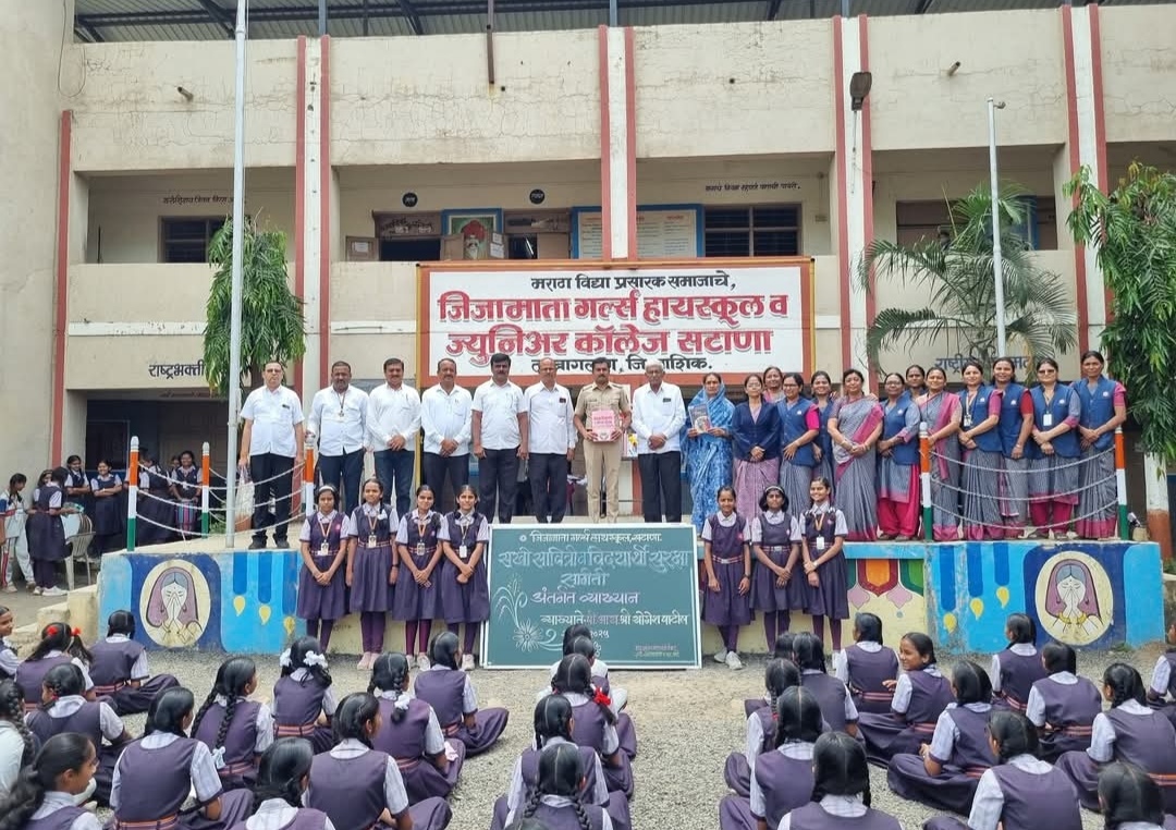 सटाणा (ता. बागलाण) – मराठा विद्या प्रसारक समाज संचलित जिजामाता गर्ल्स हायस्कूल आणि कनिष्ठ महाविद्यालय, सटाणा येथे ‘सखी सावित्री’ आणि ‘विद्यार्थी सुरक्षा समिती’ अंतर्गत विद्यार्थिनींसाठी उपयुक्त आणि जागरूकतेपर व्याख्यानाचे आयोजन करण्यात आले.या कार्यक्रमात प्रमुख मार्गदर्शक म्हणून सटाणा पोलीस स्टेशनचे पी.एस.आय योगेश बोरसे-पाटील उपस्थित होते. त्यांनी विद्यार्थिनींना डिजिटल युगातील वाढत्या धोक्यांविषयी सखोल मार्गदर्शन केले. सोशल मीडियाचा अतिरेकी वापर, मोबाईलचा गैरवापर, सोशल मीडिया प्लॅटफॉर्मवर वैयक्तिक माहिती शेअर करताना घ्यावयाची खबरदारी, अनोळखी लिंकवर क्लिक करणे टाळणे, ओटीपी कोणालाही शेअर न करणे यांसारख्या मुद्द्यांवर त्यांनी स्पष्ट आणि प्रभावीपणे चर्चा केली.सायबर गुन्हे कसे घडतात, त्यापासून स्वतःचे संरक्षण कसे करावे, याविषयीही त्यांनी विद्यार्थिनींना उपयुक्त उदाहरणांसह माहिती दिली. त्याचबरोबर त्यांनी रस्ता वाहतूक सुरक्षेचे नियम समजावून सांगितले. देशात वाढत असलेल्या अपघातांच्या पार्श्वभूमीवर वाहतुकीचे नियम पाळणे किती आवश्यक आहे, हे त्यांनी विद्यार्थिनींना पटवून दिले.आजच्या स्पर्धात्मक युगात विद्यार्थिनींनी केवळ अभ्यासापुरते मर्यादित न राहता स्पर्धा परीक्षांची तयारी करावी, वाचन करावे, विशेषतः थोर महापुरुषांच्या चरित्रातून प्रेरणा घ्यावी असे आवाहनही त्यांनी यावेळी केले.कार्यक्रमाच्या अध्यक्षस्थानी मराठा विद्या प्रसारक समाजाच्या प्रथम महिला संचालिका शालन ताई सोनवणे होत्या. याशिवाय माध्यमिक स्कूल कमिटी अध्यक्ष श्री. बी. एस. सूर्यवंशी, विद्यालयाच्या प्राचार्या सौ. संगीता सोनवणे, पर्यवेक्षक श्री. ढेपले सर यांची उपस्थिती होती.सदर कार्यक्रम सखी सावित्री समिती प्रमुख श्रीमती ए. जे. पवार व विद्यार्थी सुरक्षा समिती प्रमुख श्रीमती व्ही. ए. खैरनार यांच्या संयोजनाखाली पार पडला. यावेळी विद्यालयातील सर्व शिक्षक, शिक्षकेतर कर्मचारी आणि विद्यार्थीनी उपस्थित होत्या