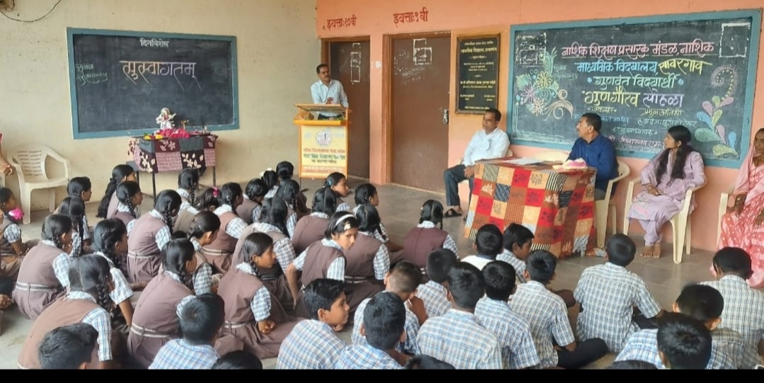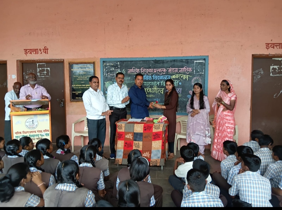 सावरगाव .(प्रतिनिधी) शुक्रवार दि 25/7/25 रोजी ना शि प्र मंडळ नासिक संचलित माध्यमिक विदयालय सावरगाव येथे इयत्ता 10 वी सन 2024-25 उत्तीर्ण विदयार्थ्यांचा गुणगौरव सोहळा संपन्न झाला. याप्रसंगी कार्यक्रमाच्या अध्यक्षस्थानी डॉ श्री शशिकांत जाधव व प्रमुख अतिथी ह.भ. प. रामायणाचार्य माधुरीताई शेरेकर उपस्थित होत्या. कार्यक्रमाचा प्रारंभ इशस्तवन व सरस्वतीपुजानाने झाला.