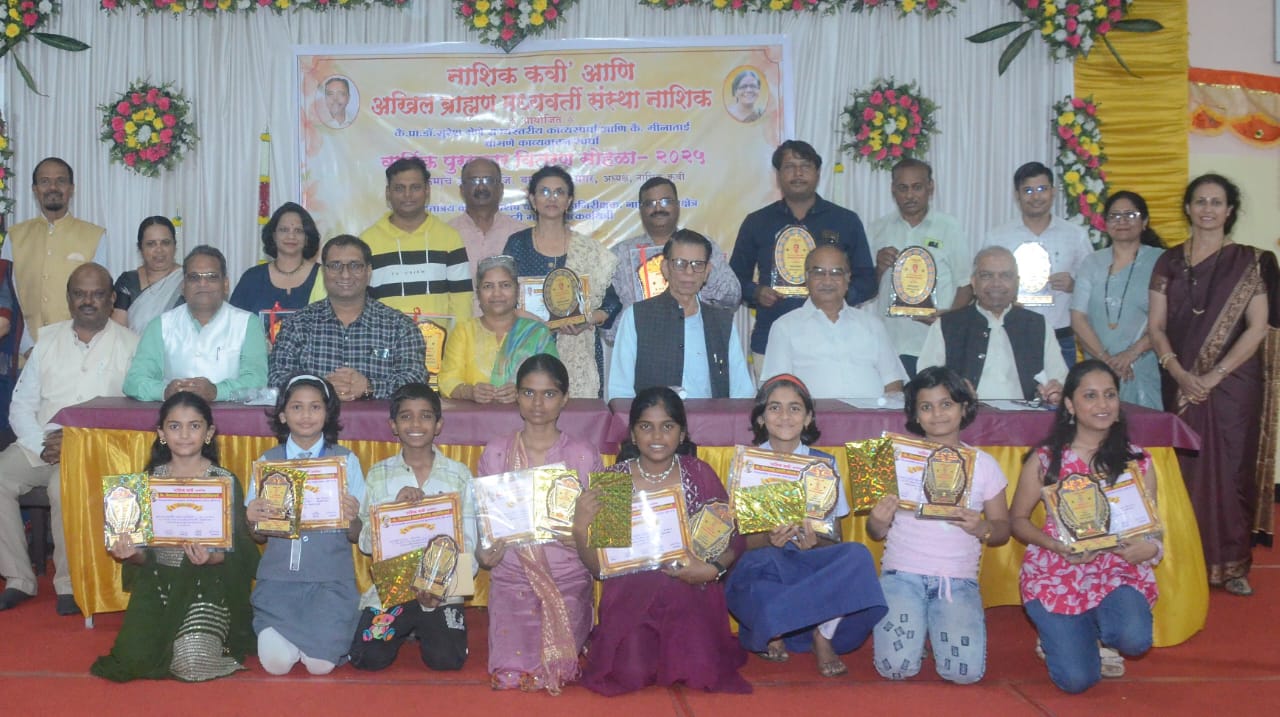नाशिक ( बातमीदार- )कविता लिहीण्याचे संस्कार हे लहानपणापासून होणे गरजेचे असते. कवितेची समज येऊ लागते विचार परिपक्व होतात अनुभवांची व्यापकता वाढते तसतशी कविता बदलत जाते हा कवितेच्या समृद्धीचा प्रवास रियाजामुळे होतो.आजही कवितांचे विविध प्रकार लिहीले जातात पण कविता लिहीतांना प्रत्येक कवीने कविता ही सर्वस्वी स्वतःची हवी हे लक्षात ठेवलेच पाहीजे असे प्रतिपादन ज्येष्ठ कवयित्री साहित्यिका माधुरी माटे यांनी केले. त्या नाशिक कवी आणि अखिल ब्राह्मण मध्यवर्ती संस्था नाशिक यांच्या संयुक्त विद्यमाने आयोजित आयोजित कै. प्रा. डॉ. सुरेश मेणे स्मृती राज्यस्तरीय काव्यसंग्रह व काव्यलेखन स्पर्धा तसेच शालेय विद्यार्थ्यांसाठी आयोजित कै.मीनाताई धामणे स्मृती काव्यवाचन स्पर्धांच्या पारितोषिक वितरण समारंभात प्रमुख पाहुणे म्हणून बोलत होत्या. आखिल ब्राह्मण मध्यवर्ती संस्थेच्या अभ्यंकर सभागृहात झालेल्या या कार्यक्रमाच्या अध्यक्षस्थानी नाशिक कवीचे अध्यक्ष इंजी. बाळासाहेब मगर हे होते तर प्रमुख पाहुणे म्हणून आर्की.चंद्रकांत धामणे, आनंद ॲग्रोचे जनरल मॅनेजर विश्वजीत आहेर तसेच अब्राम संस्थेचे कार्याध्यक्ष अनिल देशपांडे हे उपस्थित होते.याच दिवशी सकाळी झालेल्या कै. मिनाताई धामणे जिल्हास्तरीय काव्यवाचन स्पर्धेमध्ये ११० बालकवींची सहभाग नोंदविला. संस्थेच्या उपक्रमाचे १८ वे वर्ष आहे. या वर्षीही स्पर्धेसाठी अभूतपूर्व प्रतिसाद मिळाला असून स्पर्धेसाठी भारत आणि भारता बाहेरून ६७५ कविता आणि ८८ काव्यसंग्रह प्राप्त झाले होते. पुरस्कारचे स्वरूप रोख रक्कम, स्मृतीचिन्ह आणि प्रमाणपत्र असे आहे. या स्पर्धांसाठी परीक्षक म्हणून श्री. मनोहर विभांडीक, नाशिक, श्री. प्रमोद खराडे, पुणे, श्री. गिरीश जोशी, छ. सांभाजी नगर, श्रीमती ज्योस्त्ना चांदगुडे, पुणे तर काव्यवाचन स्पर्धेचे सविता पोतदार, चिदानंद फाळके, प्रांजली आफळे आणि आशा गोवर्धने यांनी काम पाहिले.या स्पर्धेचा निकाल पुढील प्रमाणे.*पुरस्कारार्थी*काव्यसंग्रह प्रथम -किरण भावसार (घामाचे संदर्भ ) सिन्नर द्वितीय – श्रीपाद जोशी, पुणे (शुभ्र नभाचे काठ) तृतीय- सुनिती लिमये, पुणे (दिवसांची पाने) उत्तेजनार्थ- दिनेश भोसले, चिंचवड (सूर्य आहे पेरला) *काव्यलेखन (मुक्तछंद गट)*प्रथम-संकेत पाटील, नाशिकद्वितीय- कविता झुंजारराव,मुंबई तृतीय- सुरजकुमारी गोस्वामी, हैद्राबाद,उत्तेजनार्थ- सचिन इनामदार, कोल्हापूर*वृत्तबद्ध गट* प्रथम- किरण वेताळ,पुणे द्वितीय- राहुल कुलकर्णी, धुळे तृत्तीय- रेखा हिरेमठ, सांगली उत्तेजनार्थ- देवेंद्र जोशी, यवतमाळ.*काव्यवाचन स्पर्धा**पाचवी ते सातवी गट*प्रथम- मनस्वी मतकर, डेकेअरद्वितीय-उन्नती नाकील,होली मदर स्कुल तृतीय-वैदेह