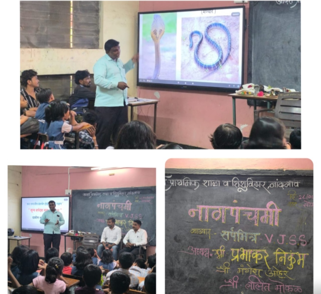 आणि वेगवेगळ्या परिस्थितीमध्ये वेगवेगळे उपाययोजना करण्याचे मोलाचे मार्गदर्शन केले व श्री संजय जाधव सर यांनी विद्यार्थ्यांना नागपंचमी विषयी माहिती सांगितली यावेळी शाळेतील कार्यक्रम यशस्वी होण्याकरता सर्व शिक्षक शिक्षिका व शिक्षकेतर कर्मचारी यांचे मोलाचे सहकार्य लाभले… व कार्यक्रमाचे सूत्रसंचालन श्री शिरसाठ सर यांनी केले…