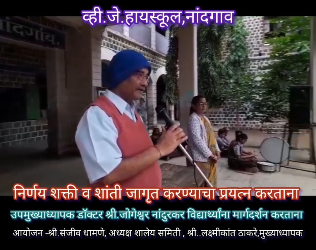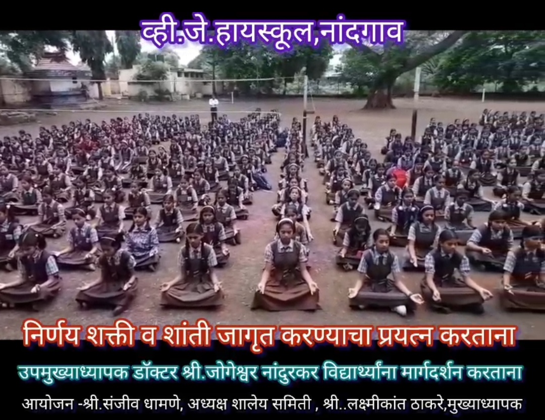 नांदगाव (प्रतिनिधी) व्ही. जे. हायस्कूल, नांदगाव येथे शालेय समिती अध्यक्ष मा. श्री. संजीव धामणे व मुख्याध्यापक मा. श्री. लक्ष्मीकांत ठाकरे यांच्या संयोजनातून आणि उपमुख्याध्यापक डॉ. जोगेश्वर नांदुरकर यांच्या संकल्पना व मार्गदर्शनातून एक अभिनव उपक्रम साकारला आहे. तो म्हणजे मुद्रांकित शिक्षण. या उपक्रमात रोज प्रार्थनेच्या वेळी मुद्रा करून घेऊन त्यातून मुलांच्या शक्ती, बुद्धी, स्मृती, दया, क्षमा, शांती या सर्व गोष्टींचा विकास साधला जातो. मुलांना निव्वळ पारंपारिक शिक्षण देण्यापेक्षा काही वेगळ्या प्रकारचे शिक्षण देण्याचा हा प्रयत्न असल्यामुळे विद्यार्थी, शिक्षक, पालक यांनी या उपक्रमाबद्दल समाधान व्यक्त केलं आहे.