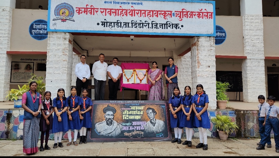 मोहाडी ( बातमीदार): मविप्र संस्थेच्या थोरात विद्यालय मोहाडी येथे लोकमान्य बाळ गंगाधर टिळक पुण्यतिथी व लोकशाहीर अण्णाभाऊ साठे यांची जयंती उत्साहात साजरी करण्यात आली. प्राचार्य शरयू भामरे मॅडम व पर्यवेक्षक श्री रवींद्र निकम सर यांच्या हस्ते लोकमान्य टिळक व लोकशाहीर अण्णा भाऊ साठे यांच्या प्रतिमेचे पूजन करण्यातआले.कार्यक्रमाचे अध्यक्ष्यस्थान जेष्ठ शिक्षक श्री प्रदिप जाधव यांनी भूषवले. शालेय गीतमंच व संगीतशिक्षक श्री दिलीप पागेरे सर व विशाल खुळे सर यांनी लोकशाहीर अण्णा भाऊ साठेंची गीते सादर केली. कु.साक्षी सोनवणे व कु साक्षी घोलप या आठवी ब विद्यार्थिनींनी भाषणे केली त्यांना वर्गशिक्षक उल्केश भोसले यांनी मार्गदर्शन केले.प्रत्येकाने अभिमानाने स्कार्फ परिधान करावा व स्काऊट ध्येयानुसार सदैव इतरांना मदतीसाठी आपण तयार राहावे. असे एक ऑगस्ट जागतिक स्कार्फ दिवस निमित्ताने स्काऊट गाईड समिती प्रमुख श्री हेमराज गांगोडे यांनी विद्यार्थ्यांना आवाहन केले. लो.टिळक व लोकशाहीर अण्णाभाऊ साठे महान विभूती असून त्यांनी देशासाठी आपापल्या कार्यकाळात स्वार्थ बघितला नाही त्यापासून सर्वांनी प्रेरणा घ्यावी असे मत आपल्या अध्यक्षीय भाषणात ज्येष्ठ शिक्षक प्रदीप जाधव सर यांनी व्यक्त केले. कार्यक्रमासाठी सर्व शिक्षक व शिक्षकेतर कर्मचारी उपस्थित होते. फलकलेखन धनंजय जाधव व कृष्णा जाधव यांनी केले. कु.संस्कृती पवार हिने सूत्रसंचलन तर आभार कु लावण्या आहेर हिने मानले.