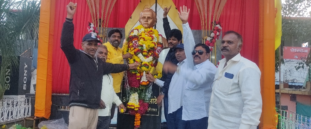 *मनमाड (प्रतिनिधी)- रिपब्लिकन पार्टी ऑफ इंडियाच्या (आठवले) वतीने लोकशाहीर अण्णाभाऊ साठे यांची 105 वी जयंती उत्साहात साजरी करण्यात आली. मनमाड येथील अण्णाभाऊ साठे यांच्या पुतळ्यास पुष्पहार अर्पण करुन अभिवादन करण्यात आले. तर अण्णाभाऊ साठे यांना भारतरत्न देण्याची मागणी करण्यात आली.या अभिवादन कार्यक्रमासाठी रिपाईचे उत्तर महाराष्ट्र कामगार तथा युवक आघाडी चे मा. वंदेशजी गांगुर्डे, ओबीसी जिल्हाध्यक्ष गोरखशेठ चौधरी, युवा नेते दीपक साळवे, कामगार आघाडी चे मनमाड शहर अध्यक्ष राजाभाऊ सावदेकर, राजेंद्र निकम, पापा शेख विलास साठे आदींसह कार्यकर्ते मोठ्या संख्येने उपस्थित होते.वंदेशजी गांगुर्डे म्हणाले की, देशाला सामाजिक क्रांतीची दिशा दाखवण्याचे कार्य महाराष्ट्रातील महापुरुषांनी केले आहे. अण्णाभाऊ साठे यांनी श्रमिक, कष्टकरी यांच्या वेदनांना हुंकार दिली. आपल्या साहित्यातून त्यांनी श्रमिकांच्या व्यथा मांडल्याचे त्यांनी सांगितले. अजय साळवे यांनी अण्णाभाऊंनी आपल्या लेखनातून कष्टकऱ्यांच्या वेदना जगा समोर आणल्या. आजही समाजात श्रमिक-कष्टकऱ्यांना न्याय मिळत नसून, न्याय-हक्कासाठी लोकशाहीर अण्णाभाऊ साठे यांच्या विचाराने संघर्ष करण्याची गरज असल्याचे त्यांनी स्पष्ट केले.