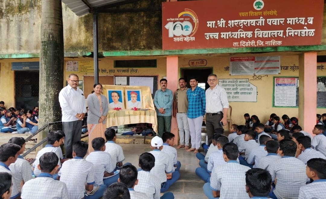 निगडोळ:(प्रतिनिधी)-शुक्रवार दि.१ऑगस्ट २०२५ रोजी मा.शरदरावजी पवार माध्य.विद्यालय निगडोळ या ज्ञानसंकुलात लोकशाहीर अण्णाभाऊ साठे यांची जयंती व लोकमान्य टिळक यांची पुण्यतिथी साजरी करण्यात आली.कार्यक्रमाच्या अध्यक्षस्थानी विद्यालयाचे मुख्याध्यापक बोरसे डी.डी.होते.मंचावर विद्यालयाचे जेष्ठ शिक्षक एन.जे.कापडणीस,पी.व्ही.गायकवाड मॅडम विद्यालयाचे सांस्कृतिक विभाग प्रमुख ए.बी.वाघमारे,एस.व्ही बेद्रे उपस्थित होते.लोकशाहीर आण्णाभाऊ साठे व लोकमान्य टिळक यांच्याविषयी ऋतुजा वाघ व भावना भोये या विद्यार्थीनींनी भाषणे दिली.शिक्षक मनोगत कापडणीस एन.जे यांनी व्यक्त केले.अध्यक्षीय मनोगत व्यक्त करतांना मुख्याध्यापक बोरसे डी.डी.यांनी दोन्ही विभूतींविषयी परिपूर्ण माहिती विद्यार्थ्यांना दिली.कार्यक्रमाच्या यशस्वितेसाठी विद्यालयातील शिक्षकेतरवृंद व्ही.ए. देवरे व टी.व्ही.भामरे यांचे मोलाचे सहकार्य लाभले.
