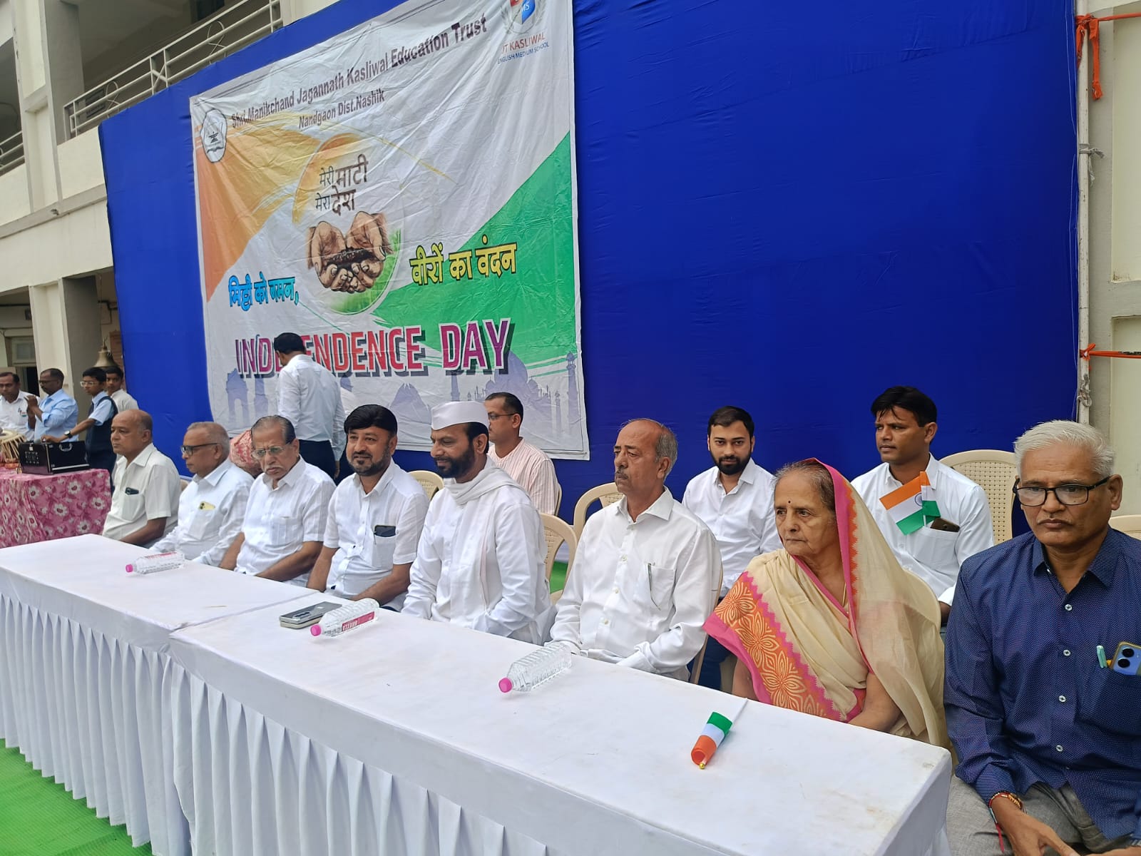 नांदगाव-15 ऑगस्ट 2025नांदगाव येथील जे.टी. कासलीवाल इंग्लिश मिडियम स्कुल व सौ.क.मा.कासलीवाल प्राथमिक व माध्यमिक विद्यालयात 79 वा स्वातंत्र्यदिन मोठ्या उत्साहात साजरा करण्यात आला. नांदगाव नगरपालिकेचे नगराध्यक्ष राजेशजी कवडे यांच्या हस्ते ध्वजारोहण करण्यात आले. ते याप्रसंगी प्रमुख अतिथी म्हणून उपस्थित होते. याप्रसंगी शालेय क्रीडा शिक्षक अशोक बागूल व संजय त्रिभुवन यांच्या मार्गदर्शनाखाली शालेय मंत्रिमंडळ, हाऊस कॅप्टन व टीमने संचलन केले.या कार्यक्रमात मागील