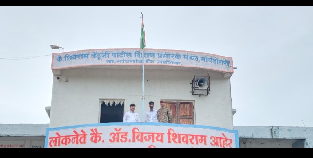 नायडोंगरी. ( प्रतिनिधी) आज दिनांक 15 ऑगस्ट 2025 रोजी शिवराम वेडूजी पाटील शिक्षण प्रसारक मंडळ संचलित, लोकनेते कै. अँड. विजय शिवराम आहेर हायस्कुल व ज्युनियर काँलेज नायडोंगरी विद्यालयात* *भारताचा ७९ वा स्वातंत्र्य दिन मोठ्या उत्साहात साजरा करण्यात आला. सर्वप्रथम महाराष्ट्र शासनाच्या आदेशान्वये विद्यार्थ्यांची कवायत घेण्यात आली तद्नंतर कार्यक्रमाप्रसंगी उपस्थित असलेले विद्यालयाचे माजी विद्यार्थी वायुदलातील लान्स नायक श्री. संतोष सावळीराम जाधव यांच्या हस्ते ध्वजारोहण करण्यात आले. स्वातंत्र्य दिनानिमित्त फेब्रुवारी/मार्च २०२५ मध्ये झालेल्या इयत्ता १० वी आणि १२ वी परीक्षेत यशस्वी झालेल्या पहिल्या तीन विद्यार्थ्यांचा गुणवंत विद्यार्थी सत्कार आयोजित करून मान्यवरांच्या हस्ते गुणवंत विद्यार्थ्यांना प्रशस्तीपत्रक व स्मृतिचिन्हे देण्यात आले. तसेच विविध स्पर्धा परीक्षेमध्ये घवघवीत यश प्राप्त करणाऱ्या विद्यार्थ्यांचाही प्रशस्तीपत्र, सन्मानचिन्ह व स्मृतिचिन्ह देऊन उपस्थित मान्यवरांच्या हस्ते गौरव करण्यात आला.*