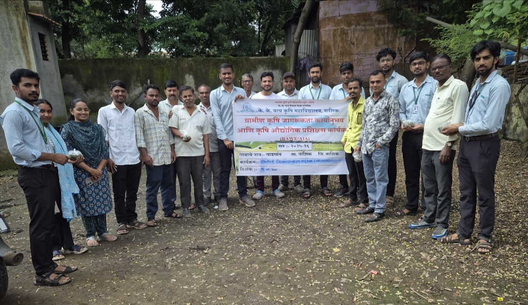 वाडगाव (प्रतिनिधी ):के. के. वाघ कृषी महाविद्यालयातील अंतिम वर्षाचे विद्यार्थि कृषीदूत नलावडे साहिल, मानस नांदुरकर, पुष्पेंद्र नायक, साहिल पाबळे, आदेश परदेशी, सर्वेश शिंदे, आदित्य बनकर, यांनी वाडगाव येथे रमेश कसबे यांच्या घरी अझोलाची निर्मिती केली.त्यात त्यांनी एक प्लास्टिकची टाकी आडवी कापली,त्यात त्यांनी माती,शेण व पाणी यांचे मिश्रण केले व या मिश्रणात अझोलाचे कल्चर सोडले .हे कल्चर त्यांना के.के.वाघ कृषी महाविद्यालयाचे प्राध्यापक टी.बी.उगले सर यांनी दिले होते. अझोला ची १० दिवसांत पुर्ण वाढ होते व ते भातामधे सोडले जाते,हवेतील मुक्त नत्र स्थिर करून ३० ते ४० किलो नत्र प्रति हेक्टरी मिळत असते. यामुळे युरिया खताची बचत होऊन उत्पादन खर्च कमी होतो. वनस्पतीमध्ये वाढ वर्धक पदार्थ जमीन तयार करून सोडल्यामुळे पिकाची वाढ जोमाने होते. प्रतिहेक्टरी उत्पादन २० ते ३० टक्क्यांनी वाढ होते. हरितद्रव्य मुक्त हिरवी पानवनस्पती असल्याने हवेत प्राणवायू सोडते व हवा शुद्ध ठेवण्यास मदत करते. दुभत्या जनावरांना दररोज खाद्यान्नामध्ये दिल्यास दुधात फॅटचे प्रमाण वाढते. यामुळे जनावरांचे आरोग्य चांगले राहण्यास मदत होते ही माहिती कृषी दुतांनी ग्रामस्थांना दिली