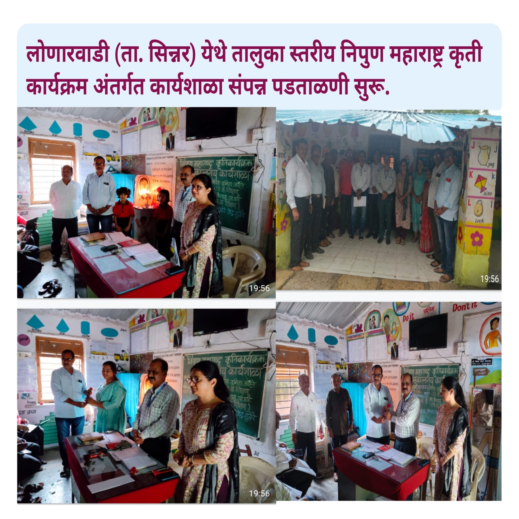 लोणारवाडी -(- वसंत गोसावी- सोनांबे बातमीदार) लोणारवाडी (ता. सिन्नर) येथे निपुण महाराष्ट्र कृती कार्यक्रमाअंतर्गत तालुकास्तरीय कार्यशाळेचे आयोजन नुकतेच करण्यात आले. गटशिक्षणाधिकारी डॉ. विजय बागुल, प्रधानमंत्री पोषण शक्ती निर्माण योजना अधिक्षक रुपाली पगारे, परिविक्षाधीन गटशिक्षणाधिकारी तेजश्री पवार, डुबेरे बीटचे शिक्षण विस्तार अधिकारी कैलास सांगळे व ब्राम्हणवाडे बीटच्या शिक्षण विस्तार अधिकारी सुनिता अहिरे यांच्या प्रमुख उपस्थितीत ही कार्यशाळा पार पडली.या कार्यशाळेसाठी उपस्थित केंद्रप्रमुख व त्यांचे अधिनस्त केंद्र याप्रमाणे – विजय खैरनार (ठाणगाव, विंचुरदळवी), कृष्णकांत शिंदे (ब्राम्हणवाडे, दापूर), दत्तात्रय गवळी (सिन्नर), विजय निरगुडे (डुबेरे), मिनाक्षी सोनवणे (मुसळगाव), बाळासाहेब फड (किरतांगळी), शिवाजी बर्गे(शहा), तानाजी पवार (सोनांबे), नवनाथ आढाव (मह्रळ) आदी केंद्रप्रमुख उपस्थित होते. गटशिक्षणाधिकारी डॉ.बागुल यांनी शाळेतील विद्यार्थ्यांची निपुण महाराष्ट्र अभियान ॲपवर लोणारवाडी येथील विद्यार्थ्यांची पुनर्चाचणी प्रात्यक्षिक घेवून त्यावर सविस्तर मार्गदर्शन केले. त्यांनी शासन निर्णयानुसार सर्व विद्यार्थ्यांच्या मूलभूत कौशल्यांची पुर्न पडताळणी वेळेवर पूर्ण करण्याचे महत्व अधोरेखित केले. तसेच शिक्षकांनी अध्यापन पद्धतीमध्ये नवकल्पना आणून विद्यार्थ्यांचा आत्मविश्वास वाढवावा, असे आवाहन केले.प्रधानमंत्री पोषण योजनेबाबत श्रीमती रुपाली पगारे यांनी आढावा घेतला. त्यांनी विद्यार्थ्यांना पौष्टिक आहार पुरविण्याच्या दृष्टीने अंमलबजावणी अधिक प्रभावी करण्यासाठी सूचना केल्या. शिक्षण विस्तार अधिकारी श्री.सांगळे व श्रीमती अहिरे यांनीही निपुण महाराष्ट्र अभियानाची अंमलबजावणी, केंद्रनिहाय प्रगती व भावी कार्ययोजना यावर मार्गदर्शन केले.दरम्यान, पुढील पाच दिवस सिन्नर तालुक्यातील सन 2024-2025 या शैक्षणिक वर्षातील दुसरी ते आठवी विद्यार्थ्यांची निपुण महाराष्ट्र अभियान अंतर्गत पडताळणी सुरू झाली आहे. यासाठी केंद्रनिहाय विशेष पथक नियुक्त करण्यात आले आहेत. विद्यार्थी पडताळणीसाठी मुद्देसूद निकष निश्चित करण्यात आले आहेत. या तपासणीतून विद्यार्थ्यांच्या शैक्षणिक गुणवत्तेचा सर्वांगीण आढावा घेऊन आवश्यक ते सुधारात्मक उपाय तातडीने राबविण्यात येणार आहेत. कार्यशाळा अतिशय खेळीमेळीच्या व संवादात्मक वातावरणात पार पडली. सर्व केंद्रप्रमुखांनी सक्रिय सहभाग नोंदवून अनुभवांची देवाणघेवाण केली. निपुण महाराष्ट्र अभियानाच्या पुर्न पडताळणीसाठी ही कार्यशाळा मार्गदर्शक ठरली असून, यामुळे तालुक्यातील शिक्षणाच्या गुणवत्तेला नवीन दिशा मिळणार आहे. डुबेरेचे क