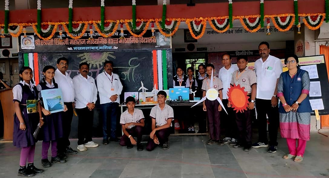 मखमलाबाद ( वार्ताहर ) = मराठा विद्या प्रसारक समाजाचे श्री छत्रपती शिवाजी महाराज माध्यमिक व उच्च माध्यमिक विद्यालय मखमलाबाद येथे “अक्षय ऊर्जा दिन” मोठ्या उत्साहात साजरा करण्यात आला.कु.कृतिका साबळे हिने अक्षय ऊर्जा दिनानिमित्त आपले मनोगत व्यक्त केले.तिने सांगितले की अक्षय ऊर्जा म्हणजे आपल्या भविष्याची गुरुकिल्ली.सौरऊर्जा, पवन ऊर्जा,जलऊर्जा यासारख्या नैसर्गिक स्रोतांचा वापर करून आपण आपले भविष्य सुरक्षित करू शकतो.आपल्या पृथ्वीचे रक्षण करण्यासाठी आणि ऊर्जेची बचत करण्यासाठी अक्षय ऊर्जेचा वापर अत्यंत महत्त्वाचा आहे. अक्षय ऊर्जा दिनानिमित्त इयत्ता ९ वीच्या विद्यार्थ्यांनी अतिशय सुंदर असे घोषवाक्य बनविलेले होते. या घोषवाक्य प्रदर्शनाचे उद्घाटन प्राचार्य संजय डेर्ले,उपप्राचार्य रावसाहेब उशीर,पर्यवेक्षक संजय हांडगे यांनी केले.याप्रसंगी सर्व विज्ञान शिक्षक उपस्थित होते.कार्यक्रमाचे सूत्रसंचालन व आभार प्रदर्शन कु.अमृता गीते हिने केले.इयत्ता ९ वी कच्या या सर्व विद्यार्थ्यांना वर्ग शिक्षिका वर्षा पाटील यांचे बहुमोल असे मार्गदर्शन लाभले.कार्यक्रमास सर्व शिक्षक वृंद शिक्षकेतर कर्मचारी व विद्यार्थी उपस्थित होते.