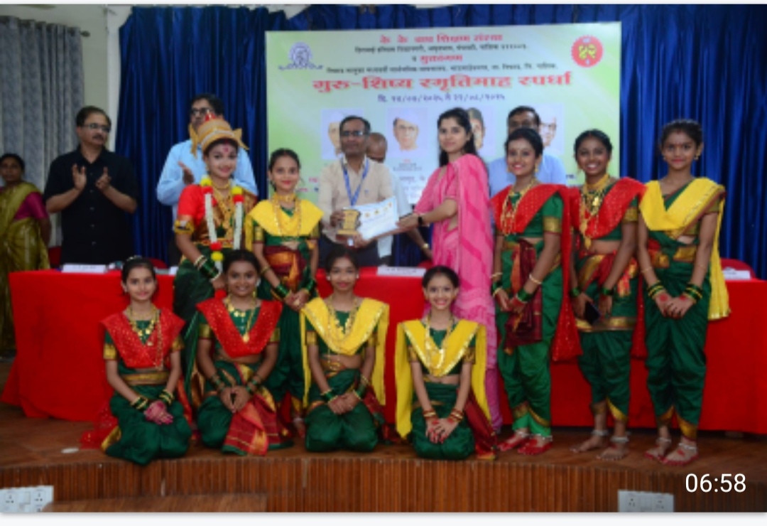 ..सिन्नर –(प्रतिनिधी ) के. के. वाघ महाविद्यालयात ‘गुरु-शिष्य स्मृती प्रित्यर्थ’ आयोजित जिल्हास्तरीय समूह नृत्य स्पर्धेत मातोश्री चांडक कन्या विद्यालयाच्या लहान गटातील (५वी ते ७वी) विद्यार्थिनींनी उत्कृष्ट कामगिरी करत प्रथम उत्तेजनार्थ बक्षीस पटकावले.प्रभावी व आकर्षक सादरीकरणाच्या बळावर विद्यार्थिनींनी परीक्षकांची मने जिंकली. या विजेत्या विद्यार्थिनींना ₹१,०००/- रोख रक्कम, सन्मानचिन्ह आणि प्रमाणपत्र देऊन गौरविण्यात आले.या यशामध्ये श्रीमती सुप्रिया गायकवाड यांनी नृत्य मार्गदर्शक म्हणून विशेष परिश्रम घेतले. यशस्वी विद्यार्थिनींच्या सन्मानार्थ विद्यालयाचे शालेय समिती अध्यक्ष श्रीराम क्षत्रिय, पालक शिक्षक संघ उपाध्यक्ष श्री गोरक्ष सोनवणे, मुख्याध्यापिका सुनिता कर्डिले, पर्यवेक्षिका सुवर्णा सोनवणे, स्टाफ सेक्रेटरी उत्तम भोये तसेच पालक शिक्षक संघाचे सचिव राजहंस माळी, सहसचिव जयश्री सोनवणे, खजिनदार दिपक गायकवाड, सहखजिनदार कोमल लहाने आदी पदाधिकाऱ्यांनी विद्यार्थिनींच्या परिश्रमाचे कौतुक केले.विद्यालयातील सर्व शिक्षक आणि पालक शिक्षक संघाचे सदस्य —राजेंद्र पाबळे, सुनील कुऱ्हे, पोपट इलग, सचिन गोळेसर, गुलाब कांदे, गायत्री कर्नाटकी, सविता ठोक, स्मिता क्षत्रिय, सुरेखा पाटील, कावेरी गुंजाळ, मंजुषा आहेर, माया सोनवणे, रेखा वाघ, रेश्मा जहागीरदार, रोहिणी करंजकर आदींनी विद्यार्थिनींना प्रोत्साहन दिले.तसेच शिक्षकवर्गातील अलका वाघ, उमा लोकरे, वैशाली दातीर, मंगेश जाधव, तृषाली बोडके, कुसुम सोनवणे, संयुक्ता कुलकर्णी, सुवर्णा बांबळे, प्रतिभा वाढवणे, नीलिमा दुसाने, रवींद्र आसवले, रेश्मा कडतंन, संध्या कुलकर्णी, प्रिया कुलकर्णी, मनीषा उकाडे, सुरेखा जेजुरकर, माधुरी कुलकर्णी, सोनाली मोरे,कांतीलाल कासार, पूजा गुरळे, ज्योती डोंगरे, संगीता पवार, कल्पना पारखे, हरिओम भडांगे, गंगाराम उघडे, अनिता मुळे, अरुणा जमधाडे, भगवंत भोये आदींनी विद्यार्थिनींची नृत्यकला खुलविण्यासाठी मोलाचे योगदान दिले.सर्व पदाधिकाऱ्यांनी आणि शिक्षकवर्गाने विद्यार्थिनींच्या मेहनतीचे कौतुक करत विद्यालयाची सांस्कृतिक कार्यक्षमता अधोरेखित केली.