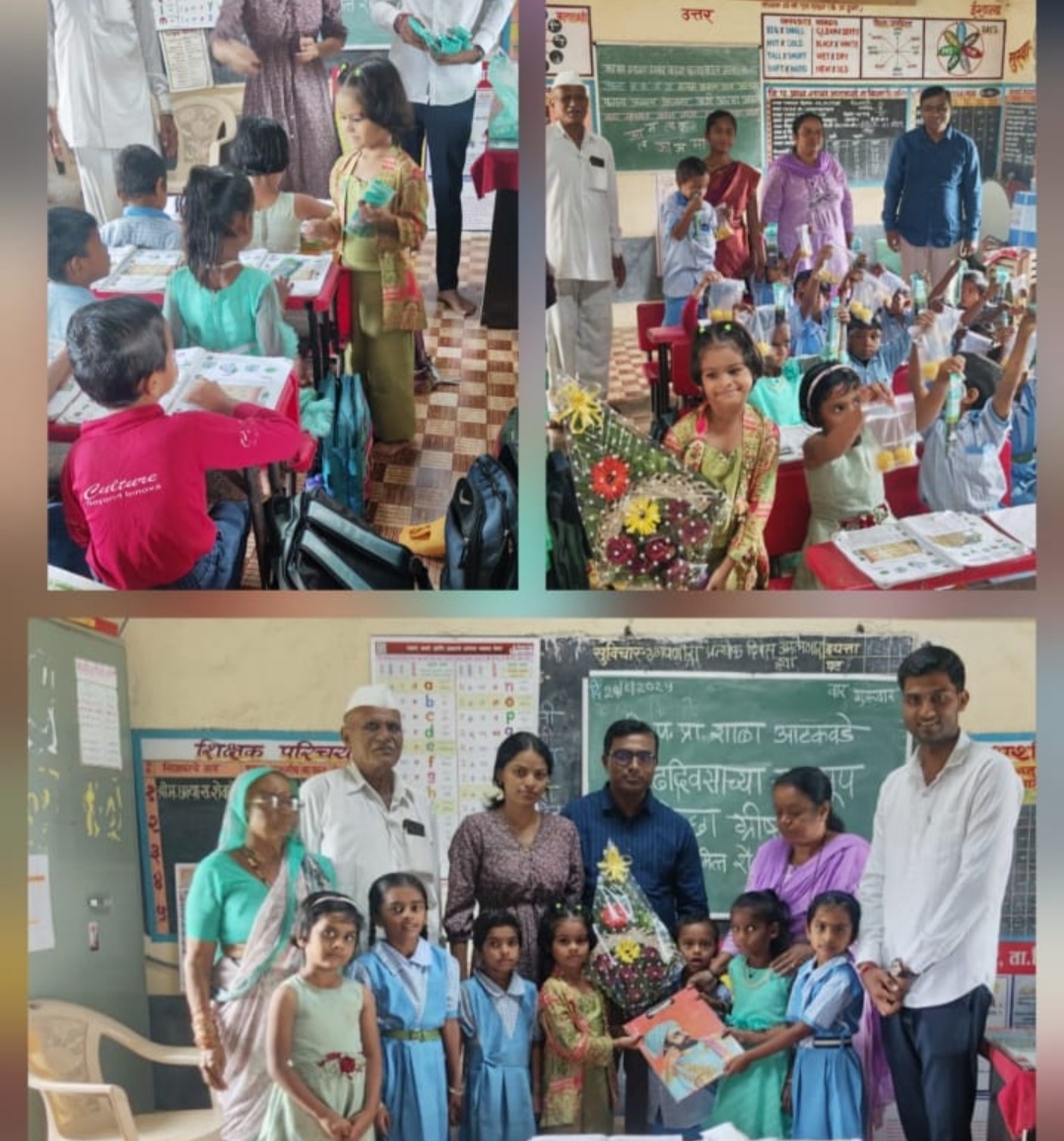 विद्यार्थ्यांच्या हसऱ्या चेहऱ्यांनी आणि ग्रीष्मासाठी उमटलेल्या शुभेच्छांनी शाळेच्या सभागृहात एक अविस्मरणीय क्षण घडून आला. या प्रसंगी ग्रीष्माला शाळेच्या वतीने वाढदिवसाच्या मंगलकामना देण्यात आल्या. शालेय मित्रपरिवारासोबत खाऊ व मिष्टान्न वाटप करून लहानग्यांच्या आनंदात भर टाकण्यात आली.मुख्यमंत्री युवा शिक्षिका प्रियंका फड, ग्रीष्माचे वडील गणपत कोंडाजी वाघ, आई सौ.मोहिनी वाघ, आजी सुमनबाई वाघ,आजोबा कोंडाजी मुरलीधर वाघ, काका वैभव सुभाष वाघ आदी उपस्थित होते. मुख्याध्यापिका सौ. छाया शेवाळे यांनी या उपक्रमाचे मनःपूर्वक कौतुक करून वाघ कुटुंबाचे आभार मानले. “आपण शिकलेल्या शाळेचे ऋण अशा सुंदर कृतीतून फेडणे, ही खऱ्या अर्थाने नवीन पिढीसमोर ठेवलेली प्रेरणादायी शिकवण आहे,” असे त्या यावेळी म्हणाल्या. अशा या अनोख्या वाढदिवस सोहळ्याने ग्रीष्मा वाघ हिच्या बालपणाला एक वेगळीच ओळख मिळाली. शाळा व समाज यांच्या सामाजिक बांधिलकीच्या या उपक्रमाचे केंद्रप्रमुख विजय निरगुडे यांनी कौतुक केले आहे.