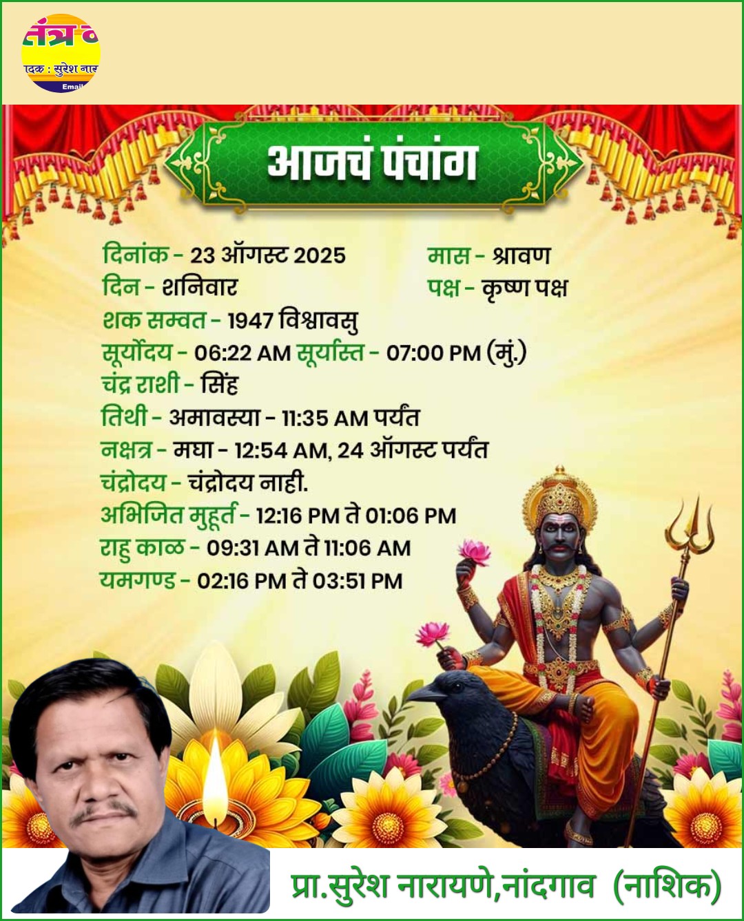★ भारतीय सौर १ भाद्रपद (नभस्यमास ) शके १९४७*