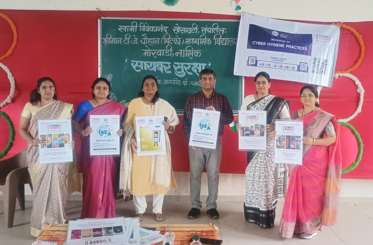 मोरेवाडी (प्रतिनिधी ) स्वामी विवेकानंद सोसायटी संचलित श्रीमान टी. जे. चौहान माध्यमिक विद्यालय, मोरवाडी येथे *सायबर सुरक्षा* अभियानांतर्गत सायबर गुन्हे जनजागृती उपक्रम राबविण्यात आला.यावेळी सायबर संस्कार संस्थेचे पदाधिकारी , पत्रकार, व लेखक तन्मय दीक्षित, विद्यालयाच्या मुख्याध्यापिका उज्वला माळी व्यासपीठावर उपस्थित होते.पाहुण्यांनी विद्यार्थ्यांना मोबाईल वापर, विविध गेम्स ,त्याचे धोके व घ्यावयाची दक्षता याबाबत सविस्तर माहिती दिली .मोबाईल वापर करत असताना वेळेची मर्यादा ठेवून मोबाईल वापर केल्यास आपली शारीरिक आणि मानसिक आणि आर्थिक हानी होणार नाही याबाबत पाहुण्यांनी मोलाचे मार्गदर्शन केले. व विद्यार्थ्यांशी संवाद साधत त्यांच्या प्रश्नांची उत्तरे दिली.कार्यक्रमाचे सूत्रसंचालन प्रिया शेवाळे यांनी तर परिचय अलका चंद्रात्रे यांनी केले.आभार प्रदर्शन प्रिया पवार यांनी केला . यावेळी मुख्याध्यापकांच्या हस्ते प्रमुख पाहुण्यांना भेटवस्तू व गुलाब पुष्प देऊन त्यांचे आभार मानण्यात आले. कार्यक्रम यशस्वीतेसाठी चित्रा येवले व इतर शिक्षक व शिक्षकेतर कर्मचाऱ्यांनी परिश्रम घेतले.