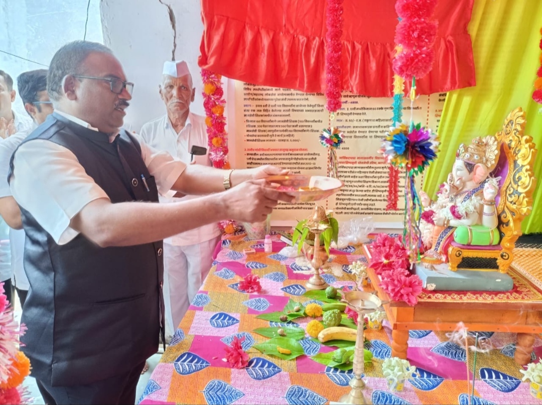 नांदगाव ( प्रतिनिधी ):- मराठा विद्या प्रसारक समाज संस्थेच्या मांडवड येथील स्व शरद आण्णा आहेर जनता विद्यालय मांडवड विद्यालयात श्री गणेश चतुर्थी उत्साहात साजरी करण्यात आली.यावेळी श्रींची प्राणप्रतिष्ठा संस्थेचे नांदगाव तालुका संचालक मा .अमितभाऊ बोरसे पाटील यांचे शुभहस्ते व शालेय समिती अध्यक्ष श्री.प्रशांतभाऊ आहेर यांच्या हस्ते मोठ्या भक्तीभावाने करण्यात आली.