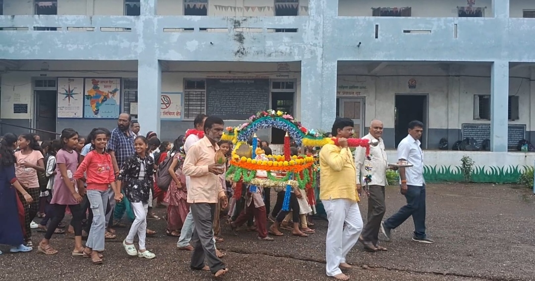 नायडोंगरी( वार्ताहर ) लोकनेते कै.ॲड.विजय शिवराम आहेर हायस्कूल व ज्युनियर कॉलेज न्यायडोंगरी विद्यालयात आज गणरायांना मोठ्या उत्साहात निरोप देण्यात आला.विद्यालयाच्या प्राचार्या सौ.पी. व्ही .आहेर यांच्या संकल्पनेतून सुरू करण्यात आलेल्या पर्यावरण पुरक गणेशोत्सव सुरू करण्यात आला.स्वच्छतेचा संदेश देत,यंदा ही दीड दिवसाच्या बाप्पांना आज निरोप देण्यात आला. विद्यालयाचे उपमुख्याध्यापक श्री. टी.ई.मवाळ यांनी सपत्नीक गणपती बाप्पांची आरती केली. विद्यालयाच्या मैदानावर ढोल ताश्याच्या गजरात मिरवणुक काढण्यात आली. विद्यार्थ्यांनी “गणपती बाप्पां मोरया पुढच्या वर्षी लवकर या…” अशा घोषणा दिल्या तद्नंतर मैदानावरच कृत्रिम तलावात गणरायांना विसर्जित करण्यात आले. विद्यार्थ्यांना प्रसाद वाटप करून कार्यक्रमाची सांगता झाली. याप्रसंगी विद्यालयाच्या प्राचार्या सौ.पी. व्ही .आहेर , उपमुख्याध्यापक श्री. टी.ई.मवाळ,पर्यवेक्षक श्री.पी.एन. सोनेज,संस्थेचे संचालक श्री.बी.व्ही.भोसले, शिक्षक,शिक्षिका व शिक्षकेतर कर्मचारी विद्यार्थी उपस्थित होते.💐💐💐💐💐💐💐💐