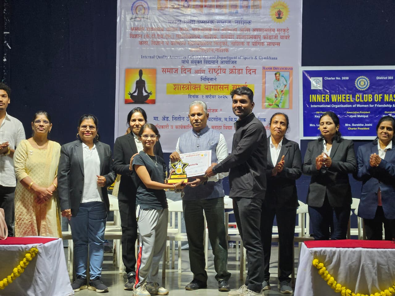 नाशिक( प्रतिनिधी)| मराठा विद्या प्रसारक समाजदिन व राष्ट्रीय क्रीडा दिन निमित्ताने शास्त्रोक्त योगासन स्पर्धा मविप्र रावसाहेब थोरात सभागृहात संपन्न झाली त्यात न्यू मराठा हायस्कूलची इयत्ता दहावीची विद्यार्थिनी दिया वाघ ने मोठ्या गटात प्रथम क्रमांक मिळविला त्याबद्दल तिचे व तिला मार्गदर्शन करणारे क्रीडा शिक्षक बाळासाहेब गायकवाड यांचे मविप्र सरचिटणी ॲड.नितीनजी ठाकरे,नाशिक शहर संचालक ॲड लक्ष्मण लांडगे ,सर्व पदाधिकारी, संचालक,शिक्षणाधिकारी, शालेय समिती सदस्य, विद्यालयाचे मुख्याध्यापक ज्ञानेश्वर शिंदे,सर्व शिक्षक, शिक्षकेतर कर्मचारी,पालक, विद्यार्थी यांनी अभिनंदन केले.