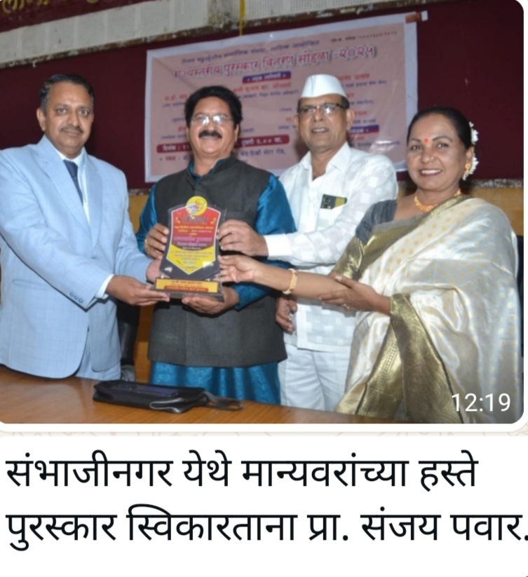 सोनांबे (वसंत गोसावी बातमीदार ): सोनांबे येथील भूमिपुत्र आणि सिन्नर महाविद्यालयाचे प्रा. संजय सुकदेव पवार यांना तेजस बहुउद्देशीय संस्थेचा राज्यस्तरीय साहित्य भूषण पुरस्कार प्राप्त झाला आहे. संभाजीनगर येथील डॉ. मौलाना आझाद संशोधन केंद्रात नुकत्याच झालेल्या भव्य सोहळ्यात प्रसिद्ध अभिनेत्री मेघा डोळस व कवी सुभाष सोनवणे यांच्या हस्ते हा पुरस्कार प्रदान करण्यात आला.प्रा. पवार यांनी ग्रामीण भागातील विद्यार्थ्यांमध्ये मेडिकल लॅब टेक्निशियन या कोर्सविषयी उत्सुकता निर्माण केली. त्यांच्या मार्गदर्शनामुळे असंख्य विद्यार्थ्यांना रोजगार व स्वयंरोजगाराच्या संधी उपलब्ध झाल्या. तसेच त्यांनी साहित्य क्षेत्रातही सक्रिय राहून अनेक पुस्तके लिहून आपले स्वतंत्र स्थान निर्माण केले. याच कार्याबद्दल त्यांना हा बहुमान मिळाल्याचे आयोजकांनी सांगितले.