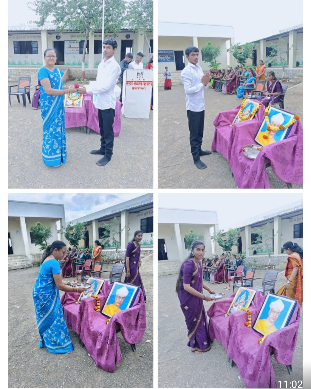 इयत्ता 10 च्या विद्यार्थ्यांनी शिक्षकांच्या भूमिकेत 5 वी ते 10 वी च्या वर्गांना अध्यापन केले व शिक्षक दिनाचा आनंद घेतला. कार्यक्रमाचे अध्यक्ष विद्यार्थी मुख्याध्यापक, बळीराम चव्हाण व कार्यक्रमाचे प्रमुख पाहुणे विद्यार्थी शिक्षिका मोरे अमृता व विद्यालयाच्या मुख्याध्यापिका यांच्या हस्ते प्रतिमेचे पूजन करून पुष्पहार अर्पण करण्यात आला. विद्यार्थी शिक्षकांनी डॉ.सर्वपल्ली राधाकृष्णन यांच्या जीवन चरित्रावर वैचारिक प्रकाशझोत टाकला.विद्यार्थ्यांनी गुलाब पुष्प व पेन देऊन शिक्षकांना शिक्षक दिनाच्या शुभेच्छा दिल्या. कार्यक्रमाचे सूत्रसंचालन विद्यार्थी शिक्षक सागर चव्हाण व समाधान राठोड यांनी केले.आभार प्रदर्शन विद्यार्थी शिक्षिका रुपाली आव्हाड ने केले याप्रसंगी संस्थेचे अध्यक्ष,सचिव, विद्यालयाच्या मुख्याध्यापिका सर्व शिक्षक, शिक्षिका,शिक्षकेतर कर्मचारी व विद्यार्थी शिक्षक व सर्व विद्यार्थी उपस्थित होते.