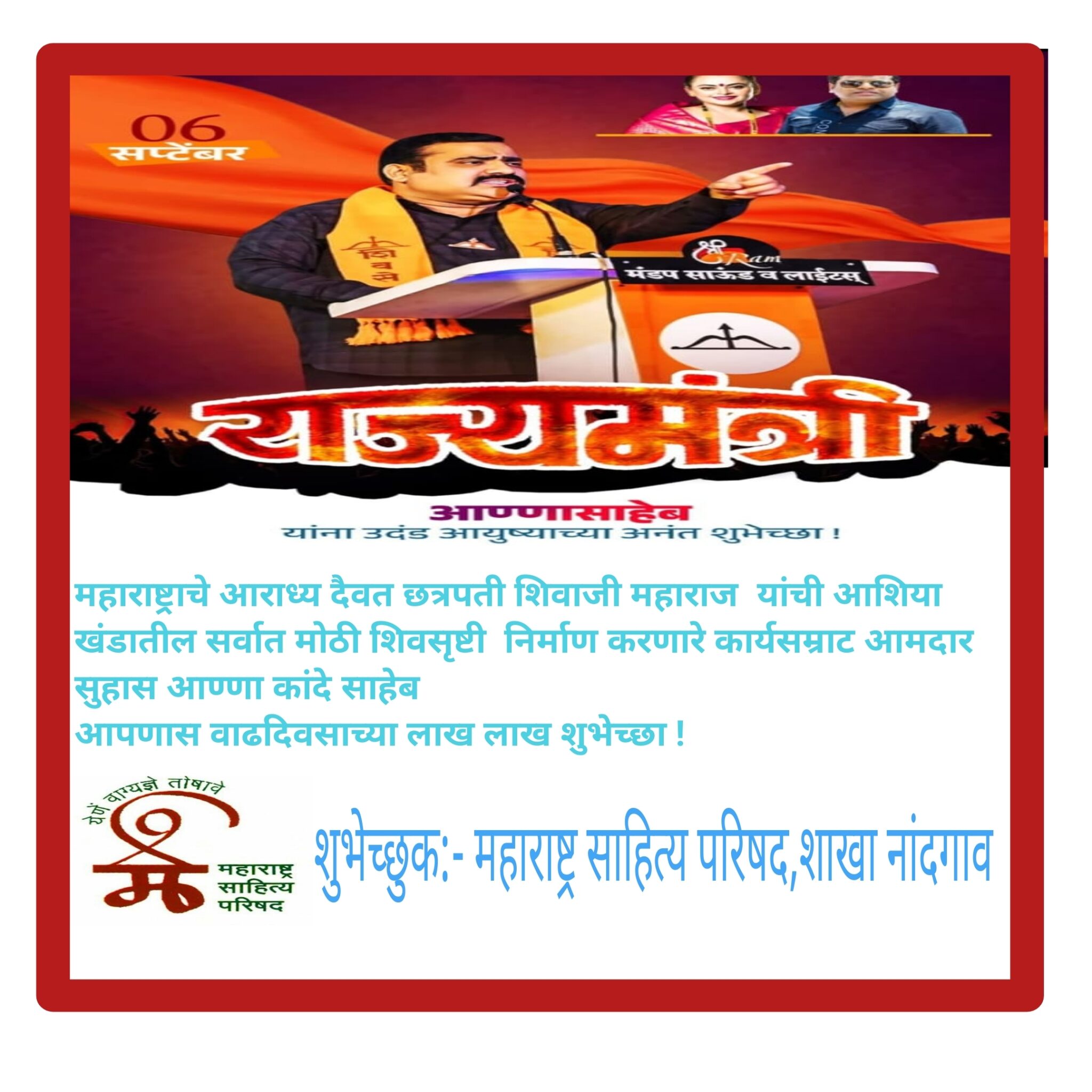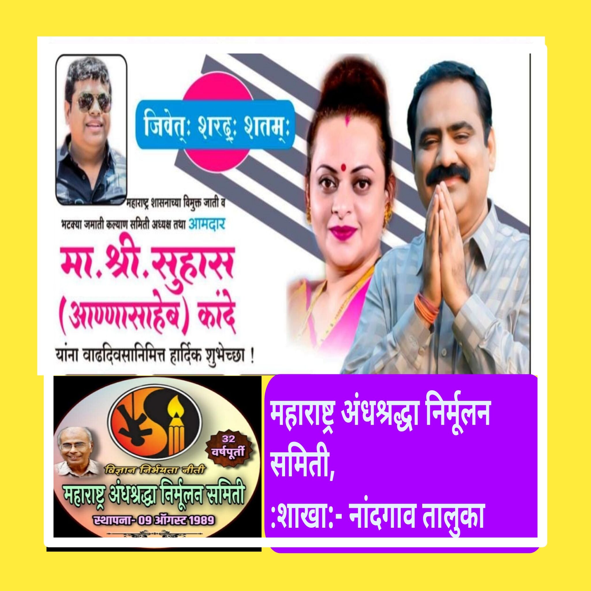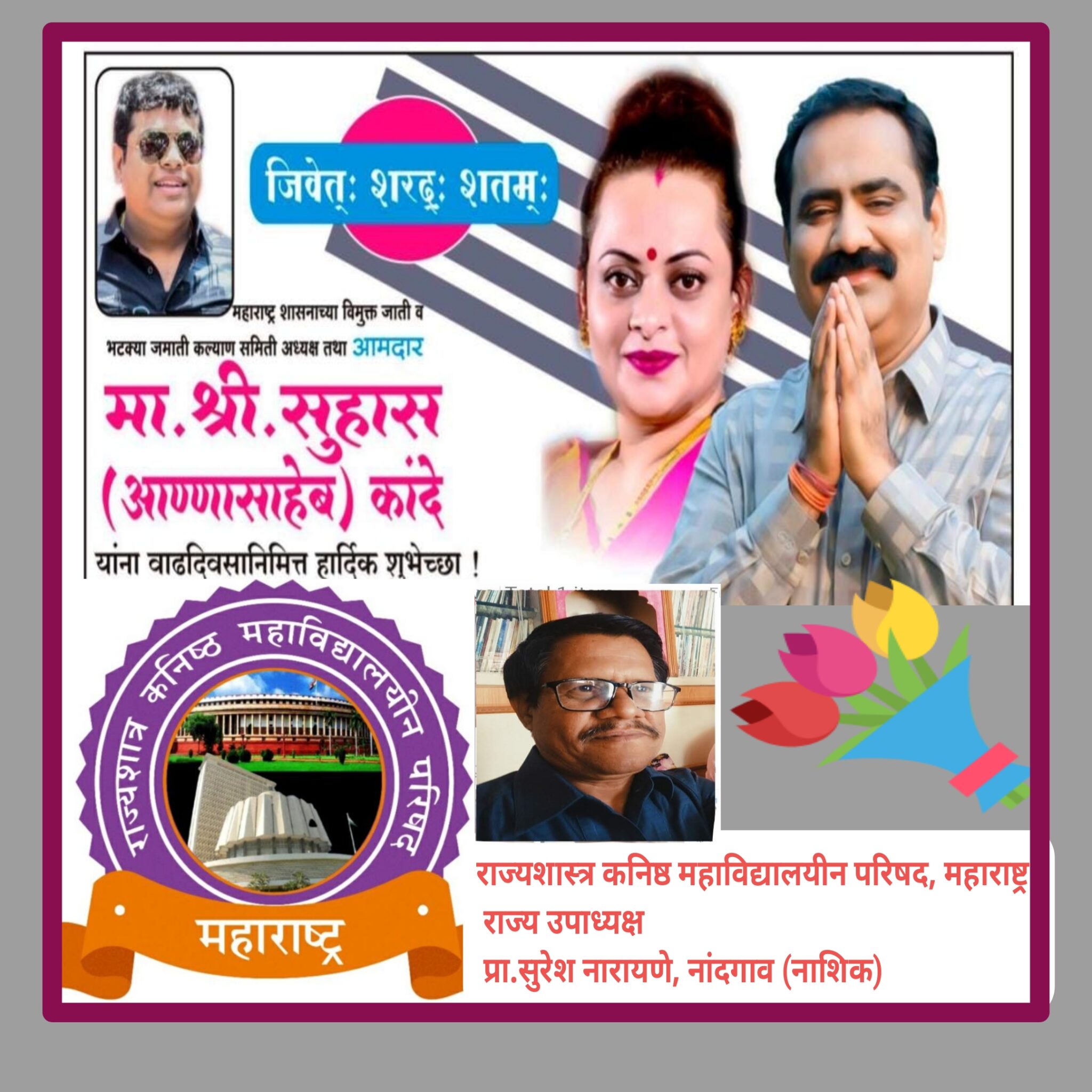 लोकनेता कसा असावा तर आ. सुहास आण्णा सारखा साधा, सरळ, प्रेमळ, आपुलकीचा ओलावा असलेले, भावना प्रधान, सतत मदतीचा हात देणारे, मतदार संघाची काळजी करणारे आण्णासाहेब सर्वांना हवे-हवेसे वाटतात. अर्थात त्यांना साथ देणाऱ्या सौ. अंजुमताईंची साथ सावली सारखी लाभत आहे . ताईंनी देखिल सामाजिक कार्यात झोकून दिले आहे. त्यांनी महिला सक्षमीकरणाचा ध्यास घेतला आहे. त्या नांदगाव येथील समृध्दी बॅंकेच्या अध्यक्षपदी असुन महिलांना आर्थिक दृष्ट्या सक्षम बनविण्यासाठी प्रयत्न करत आहेत. मतदार संघातील जवळपास तीस हजार महिला बचत गटाच्या माध्यमातून संघटीत करुन महिलांना सक्षम बनविण्यासाठी त्यांचे मोठे योगदान आहे. आण्णांच्या कार्यात सौ. अंजुमताई यांचा सिंहाचा वाटा आहे. आ. सुहास आण्णा कांदे आणि सौ. अंजुमताई यांच्या अथक प्रयत्नातुन नांदगाव मतदार संघात नांदगाव तालुका सहकारी दुध उत्पादक व प्रक्रिया स़ंघ मर्यादित.सुरु झाला आहे. हे शेतकरी वर्गाच्या दृष्टीने अत्यंत महत्त्वाचे पाऊल आहे. त्यामुळे मतदार संघ दुग्ध व्यवसायात महाराष्ट्रात आपला ठसा उमटेल. नांदगाव तालुक्यातील हिरेनगर येथे दुग्ध प्रकल्प उभारण्यात येणार आहे. त्यामुळे तालुक्यात किमान एक लाख लिटर दूध संकलन करण्याचा मानस आहे. त्याबरोबर दुग्ध जन्य पदार्थ निर्माण करुन शेतकऱ्यांचा आर्थिक विकास होईल हा दृष्टिकोन या प्रकल्पाचा आहे. या बरोबरच मतदार संघातील शहरांचा विकास भविष्याच्या दृष्टीने सक्षम व्हावा यासाठी नगरविकास रचना विभागातुन आण्णांनी वित्तीय निधी उपलब्ध करून शहरातील विविध प्रभागातील रस्ते,गटारी,भूमिगत गटारी,जल वाहिण्या, विविध ठिकाणी छोटे-मोठे पुल,आदी विविध विकास कामांचा ध्यास आ.सुहास आण्णा यांनी घेतलेला आहे. त्यामुळे नांदगाव विधानसभा मतदारसंघ महाराष्ट्राच्या नकाशावर एक विकसित मतदार संघ म्हणून ओळखला जाईल. यांचे सर्व श्रेय आमदार सुहास आण्णा कांदे आणि सौ. अंजुमताई कांदे, फरहान खान दादा, व सर्व सहकारी वर्गाला जाते हे नक्की. मतदार संघाचा विकास पाहुन नेतृत्वाने आण्णांच्या कार्याची दखल घेतली व महाराष्ट्रातील विमुक्त जाती व भटक्या जमाती कल्याण समितीच्या प्रमुख पदी नियुक्ती केली व त्यांना राज्यमंत्री पदाचा दर्जा प्राप्त झाला हा आण्णांच्या या पदांमुळे प्रथमच नांदगाव विधानसभा मतदारसंघातील जनतेचा गौरवच झाला आहे. असा सेवाभाव सतत मनात असणारे, समाजाला प्रगतीच्या दिशेने घेऊन जाणारे, कार्यतत्पर, क्रियाशील,कलाप्रेमी, सांस्कृतिक वारसा जोपासणारे, सर्वधर्म समभाव जपणारे, राष्ट्रपुरुषांचे आदर्श जपणारे, लोकाभिमुख नेतृत्व,लहान -थोरांचे लोकप्रिय आमदार, आ.सुहास आण्णा कांदे यांना जन्मदिनाच्या शुभेच्छातुन आण्णांच्या नेतृत