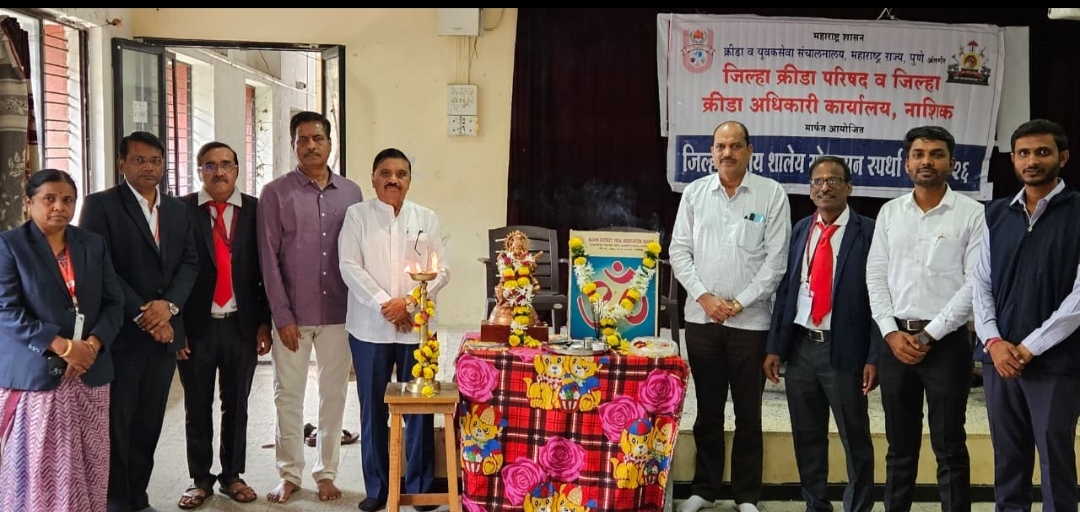 नाशिक (प्रतिनिधी )| मराठा विद्या प्रसारक समाजाचे न्यू मराठा हायस्कूलमध्ये क्रीडा व युवक सेवा संचालनालय महाराष्ट्र राज्य पुणे अंतर्गत जिल्हा क्रीडा परिषद व जिल्हा क्रीडा अधिकारी कार्यालय,नाशिक आयोजित जिल्हास्तरीय शालेय योगासन स्पर्धला उत्साहात सुरुवात करण्यात आली.कार्यक्रमाच्या अध्यक्षस्थानी मविप्र नाशिक शहर संचालक ॲड.लक्ष्मण लांडगे हे होते.व्यासपीठावर मविप्र शिक्षणाधिकारी प्रा.भास्कर ढोके,तालुका क्रीडा अधिकारी भाऊसाहेब जाधव, संजय होळकर,प्रा.पिराजी नलावडे,सुभाष खाटेकर मुख्याध्यापक ज्ञानेश्वर शिंदे,पुष्पा लांडगे,पंच दिपक उपासनी मंदार भागवत,राहुल चौधरी,जीवराम गावले,सुरेखा दिवेकर,अश्विनी येवला,स्वाती मुळे,शर्मिला डोंगरे,जयश्री भामरे,रेखा पवार, संगिता गोरे,हर्षाली पवार,योगिता शिलारकर,मंजू टिलवानी,रुपाली शेट्टी,रितीका झाल्टे,प्रिया जोशी,मनिषा गायकवाड क्रीडा शिक्षक बाळासाहेब गायकवाड,सुयश कुंभार्डे उपस्थित होते.उपस्थित मान्यवरांच्या शुभहस्ते विद्येची देवता सरस्वती व ओमकार प्रतिमा पूजन,दिपप्रज्वलनाने सुरुवात करण्यात आली.प्रास्ताविक ज्ञानेश्वर शिंदे यांनी केले.उपस्थित मान्यवरांचा ग्रंथ व गुलाबपुष्प देऊन सत्कार करण्यात आला.प्रमुख अतिथी मनोगतातून प्रा.भास्कर ढोके यांनी योगाचे मानवी जीवनातील असणारे महत्त्व सांगत स्पर्धेकांना व आयोजकांना शुभेच्छा दिल्या.पंच दिपक उपासनी यांनी सदर स्पर्धेचे नियम समजावून सांगितले.स्पर्धेचे उद्घाटन मान्यवरांच्या उपस्थितीत करण्यात आले.अध्यक्षीय मनोगतातून ॲड लक्ष्मण लांडगे यांनी आयोजकांना व स्पर्धेकांना शुभेच्छा दिल्या.जिल्हास्तरीय या स्पर्धेत अनेक शाळांनी आपला सहभाग नोंदवला.कार्यक्रमाचे सुत्रसंचलन बाळासाहेब गायकवाड यांनी केले.फोटो – जिल्हास्तरीय शालेय योगासन स्पर्धेत उपस्थित मान्यवर आदी.