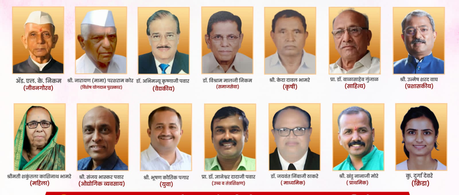 नाशिक (प्रतिनिधी ) – कळवण,सटाणा,मालेगाव आणि देवळा तालुक्याच्या कसमादे मराठा उत्कर्ष संस्थेच्या वतीने गेल्या वर्षी पासून चारही तालुक्यातील प्रशासकीय, वैद्यकीय, समाजसेवा, युवा, साहित्य, औद्योगिक, कला, शिक्षण, सहकार, कृषी, क्रीडा आणि विविध क्षेत्रात अभूतपूर्व कार्य करणाऱ्या व्यक्तींना “कसमादे गौरव पुरस्कार” देऊन सन्मानित करण्यात येते. यंदाच्या वर्षी देखील कसमादे भागातील १४ व्यक्तींची कार्यकारिणीने आणि समन्वय समितीने निवड केलेल्या व्यक्तींचा गौरव शनिवार दिनांक १३ रोजी दुपारी ३ वाजता मराठा विद्या प्रसारक समाजाच्या ‘रावसाहेब थोरात सभागृहात’ राज्याचे शिक्षण मंत्री ना. दादाजी भुसे यांच्या हस्ते गौरव करण्यात येणार असल्याची माहिती अध्यक्ष डॉ.बी.जी.वाघ, कार्याध्यक्ष प्रा.गुलाबराव भामरे, सचिव डॉ.प्रशांत सूर्यवंशी यांनी दिली. यांचा होणार गौरव :लक्ष्मण किसन निकम (जीवनगौरव),नारायण परशराम कोर (विशेष योगदान पुरस्कार), डॉ.ए.के.पवार (वैद्यकीय), खंडू नानाजी मोरे (प्राथमिक शिक्षक), डॉ.जयवंत निम्बाजी ठाकरे (माध्यमिक शिक्षक), डॉ.ज्ञानेश्वर दादाजी पवार (उच्च व तंत्रशिक्षण ), डॉ.विश्राम मालजी निकम(समाजसेवा), केदा दावल भामरे (कृषी), भूषण कौतिक पगार (युवा ), उन्मेष शरद वाघ (प्रशासकीय), श्रीमती शकुंतला काशिनाथ भामरे (कर्तबगार महिला), डॉ.बाळासाहेब गुंजाळ (साहित्य), दुर्गा प्रमोद देवरे (क्रीडा), संजय भास्कर पवार (औद्योगिक व्यवसाय) याप्रसंगी जेष्ठ पत्रकार विश्वास देवकर यांचे व्याख्यान आयोजित केले आहे. या सर्वांचा गौरव प्रसंगी कसमादे परिसरातील आणि शहर व जिल्ह्यातील हितचिंतकांनी उपस्थित राहावे असे आवाहन उपाध्यक्ष हिरामण सोनवणे, पंडित वाघ, रमेश खैरनार, रविंद्र निकम, सहसचिव विनीत पवार, प्रमोद अहिरराव, शिवराम हिरे, एन.डी.पवार, चंद्रशेखर सोनवणे, संजय अहिरराव, सुनील गांगुर्डे, प्रा.दिलीप अहिरे, डॉ.नंदू पवार,राजू देसले आदींनी केले आहे.